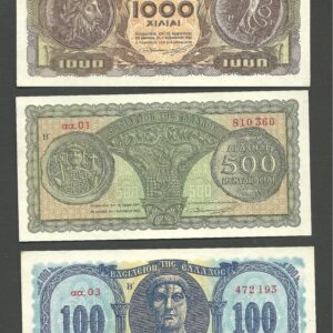 Sold1950/10/07 SET 1000DR.-500DR.-100DR. COMPLETE