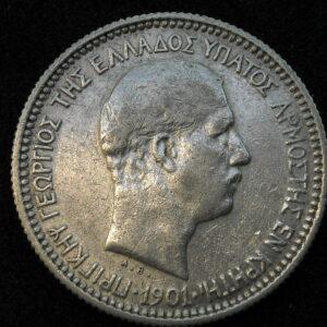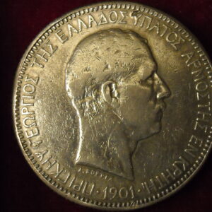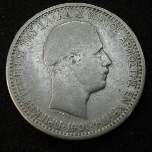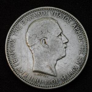 1901 5 DRACHMAS (SILVER .900) “CRETAN STATE – PRINCE GEORGE”.