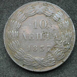 1837 10 LEPTA COIN “KINGDOM OF GREECE- KING OTTO”.