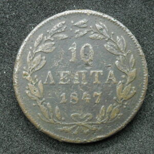 1847 10 LEPTA COIN “KINGDOM OF GREECE- KING OTTO”.