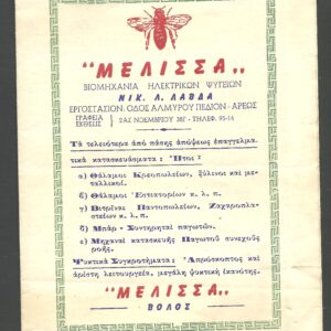 WARRANTY LEAFLET OF ELECTRICAL REFRIGERATORS “MELISSA” VOLOS