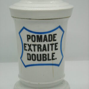 OLD EUROPEAN PHARMACY PORCELAIN CONTAINER “POMADE EXTRAITE DOUBLE.”.
