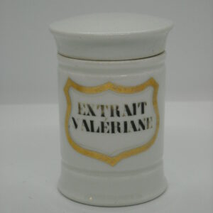 OLD EUROPEAN PHARMACY PORCELAIN CONTAINER “EXTRAIT VALERIANE”.