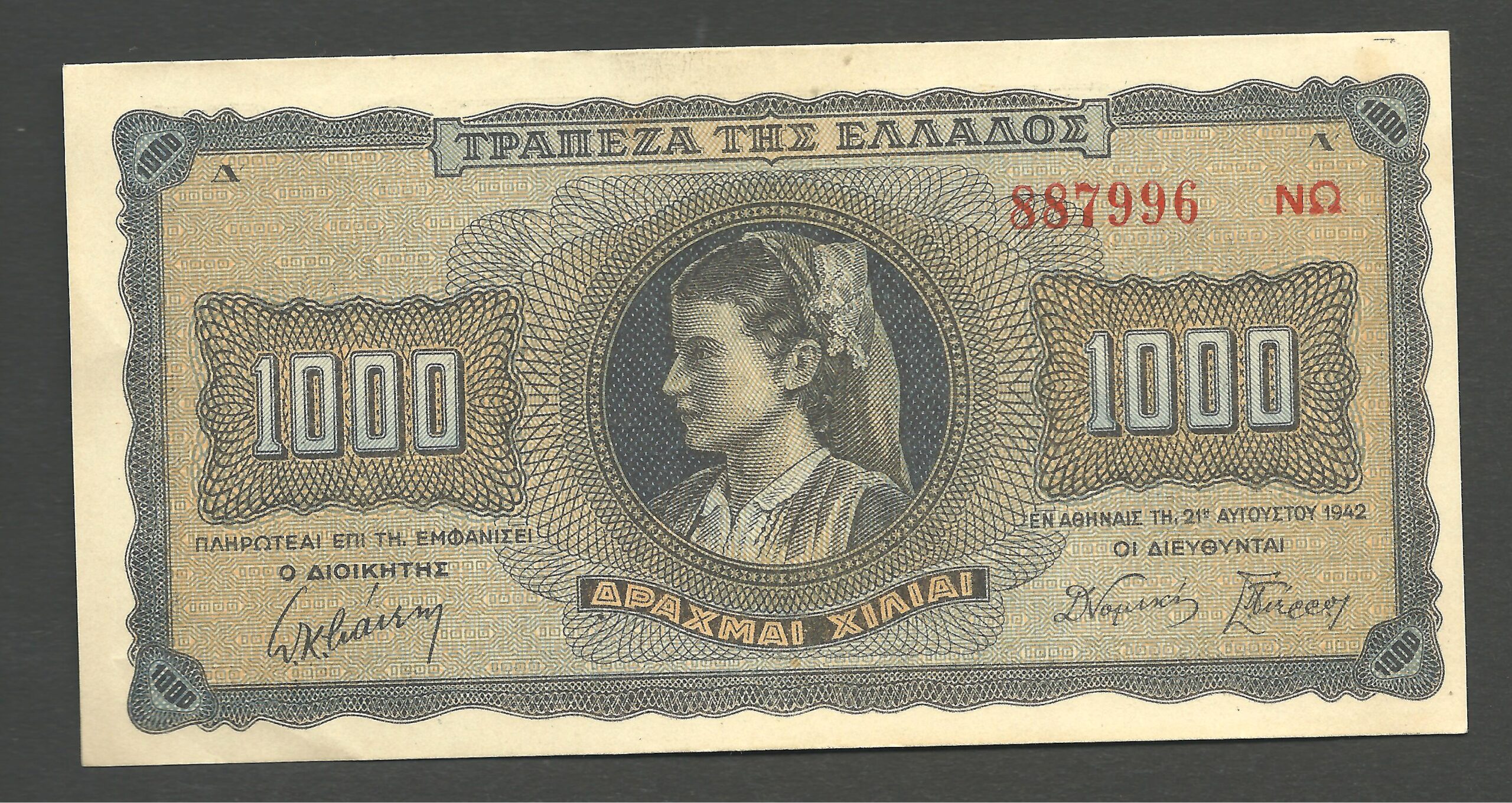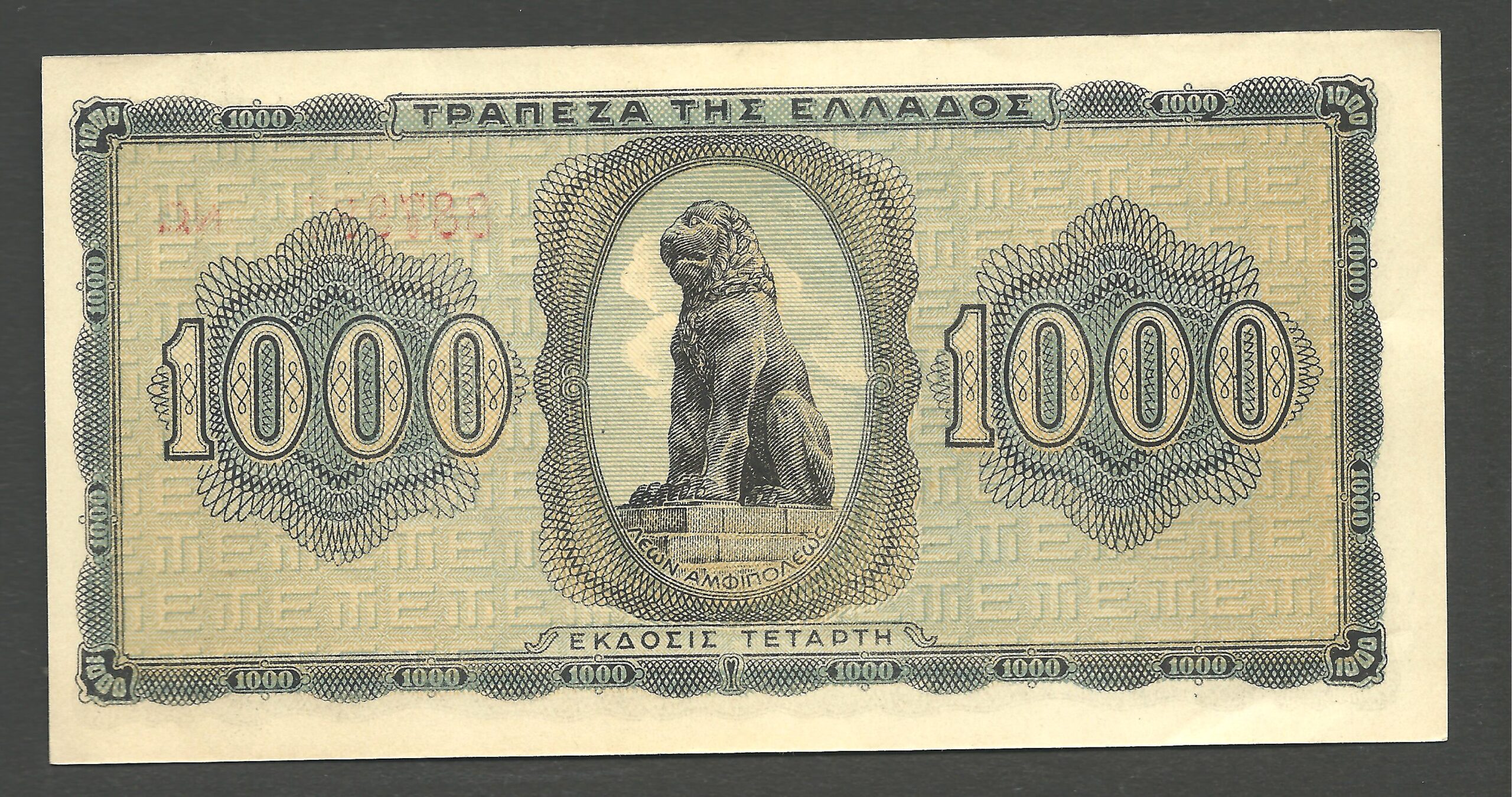 1.000 DRACHMAS 1942/21/08 4th EDITION “Hellas 144c”.