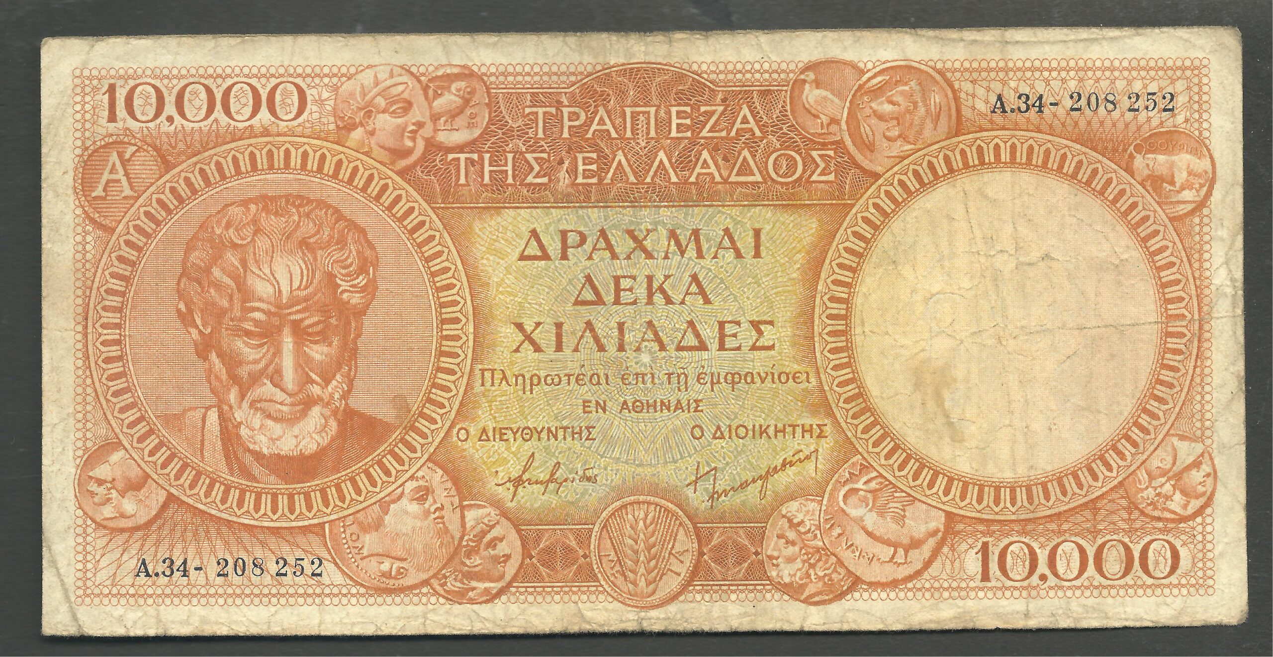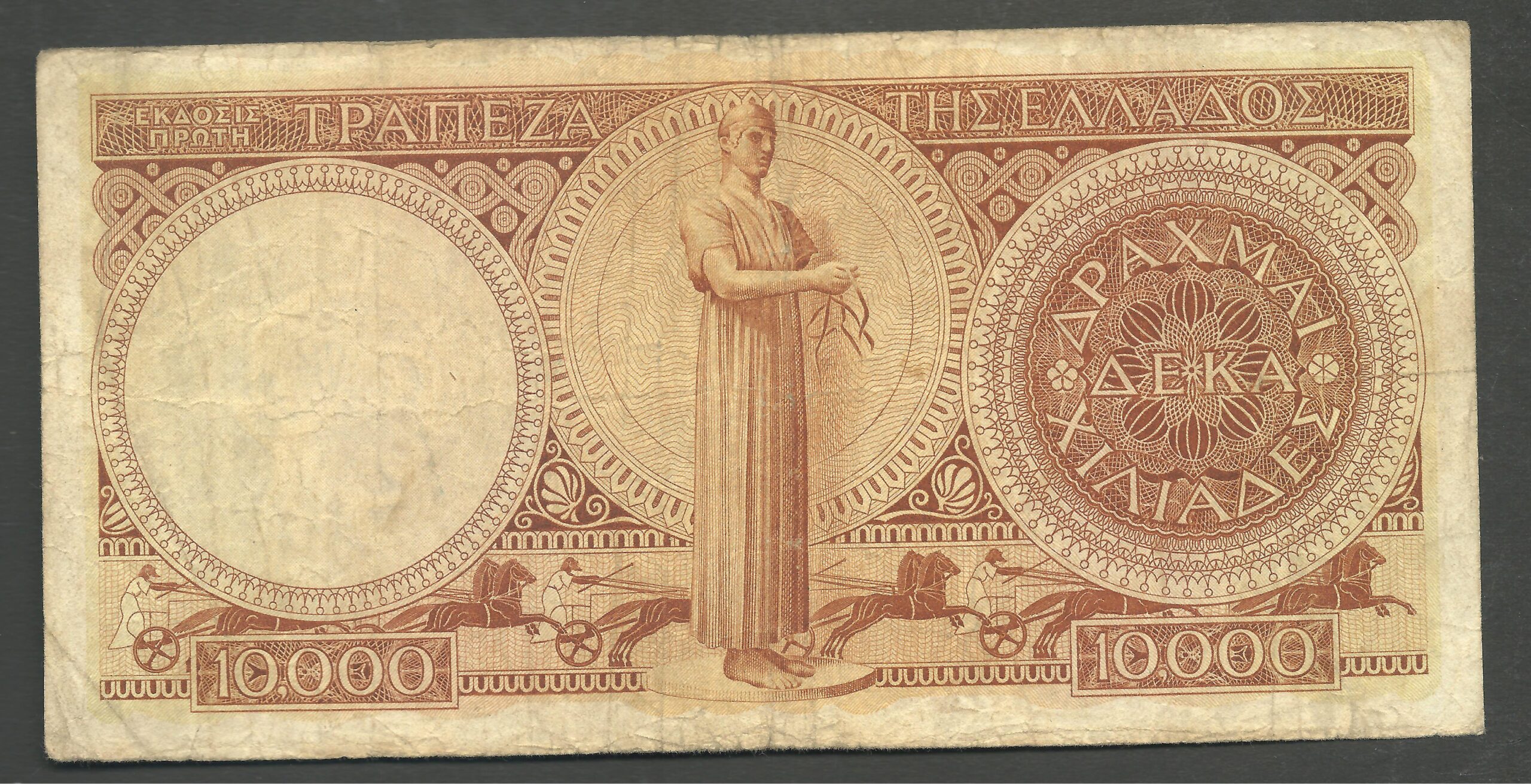 10.000 DRACHMAS 1945 1st EDITION (Bradbury Wilkinson & Co) “Hellas 167b”.