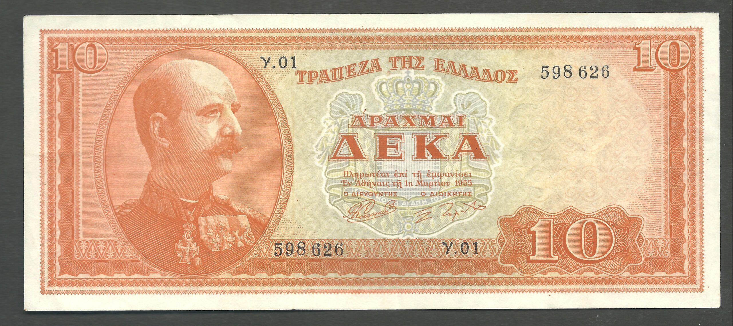 10 DRACHMAS 1955/01/03 EDITION BANK OF GREECE. “Hellas 187”.