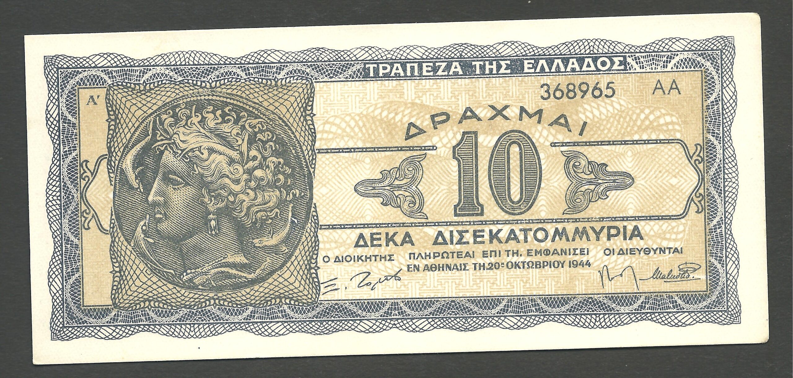 10 BILLION DRACHMAS 20/10/1944 AUNC