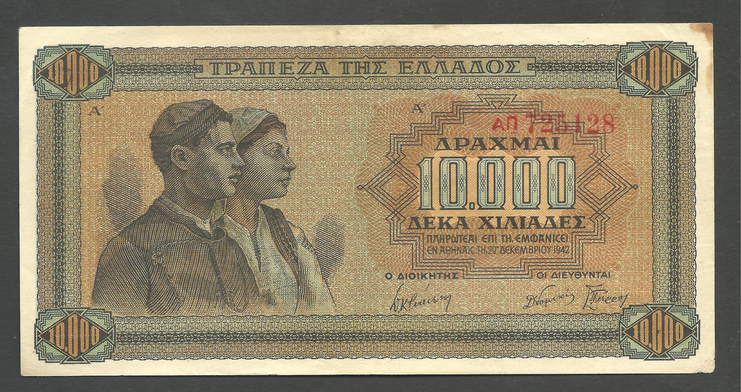 10000 DRACHMAS 29/12/1942 VERY FINE