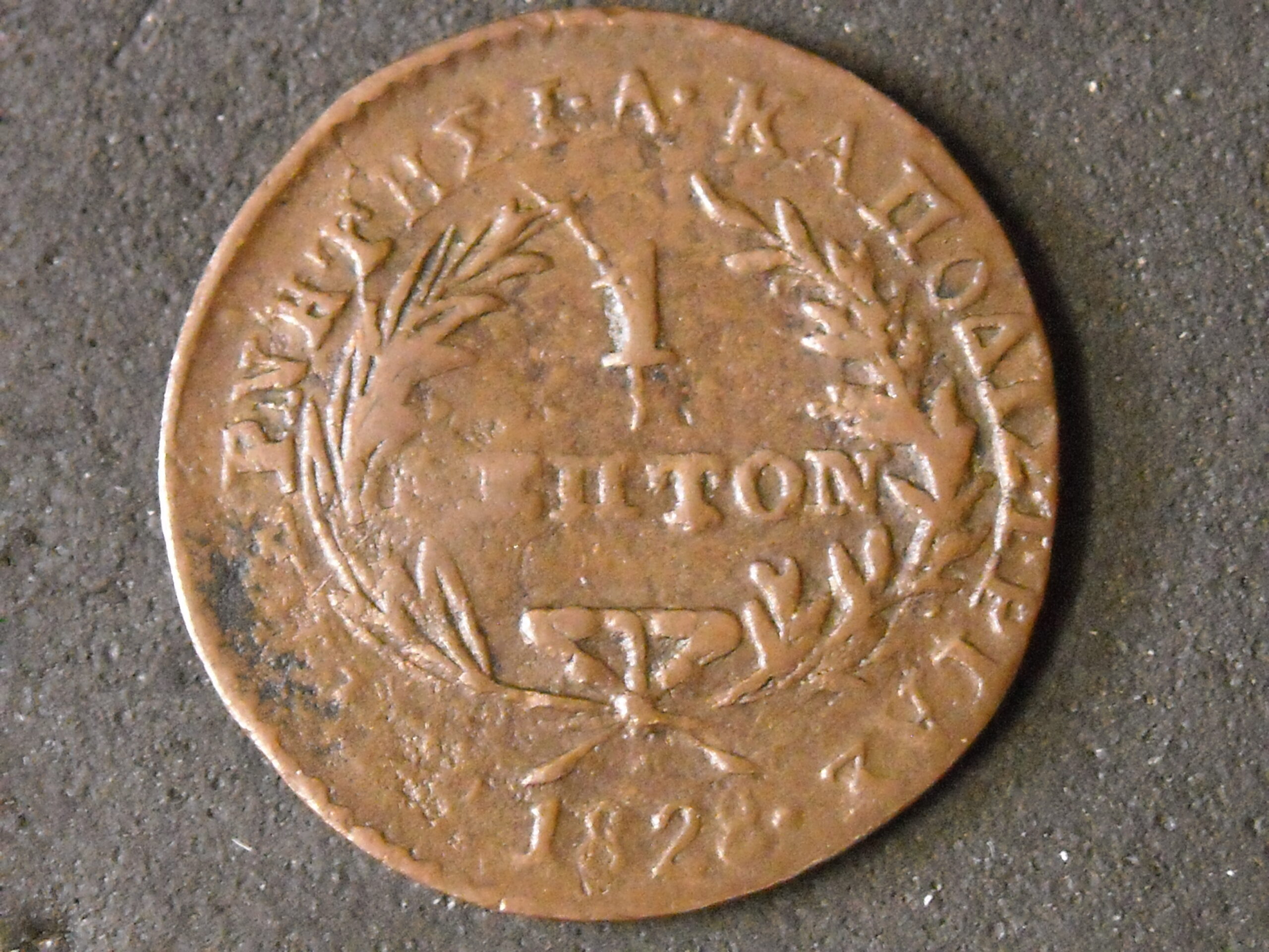1828 ONE LEPTA GOVERNOR CAPODISTRIAS 108-F.d VERY FINE