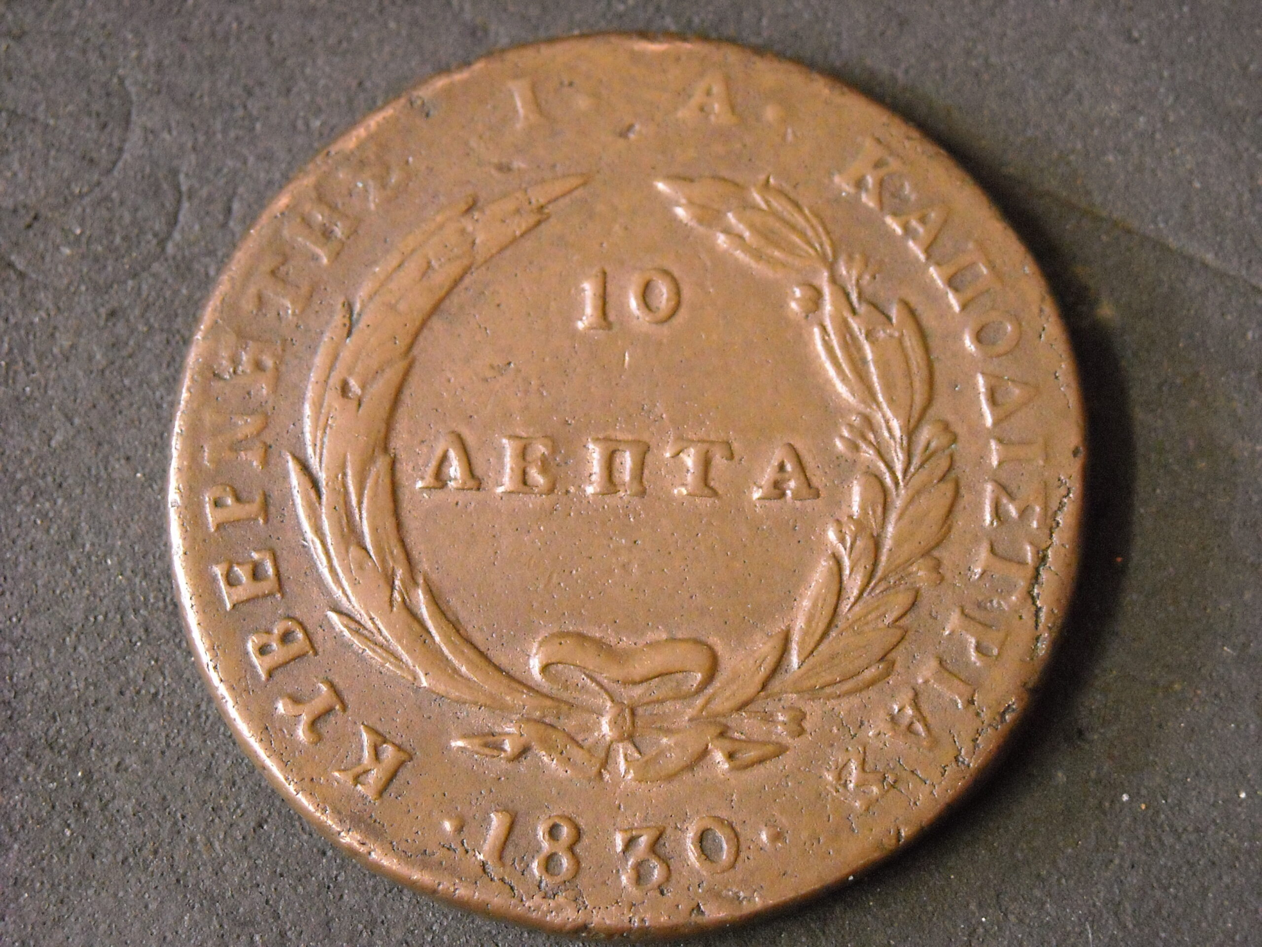 1830 10 LEPTA GOVERNOR CAPODISTRIAS 313-AE.ad EXTRA FINE