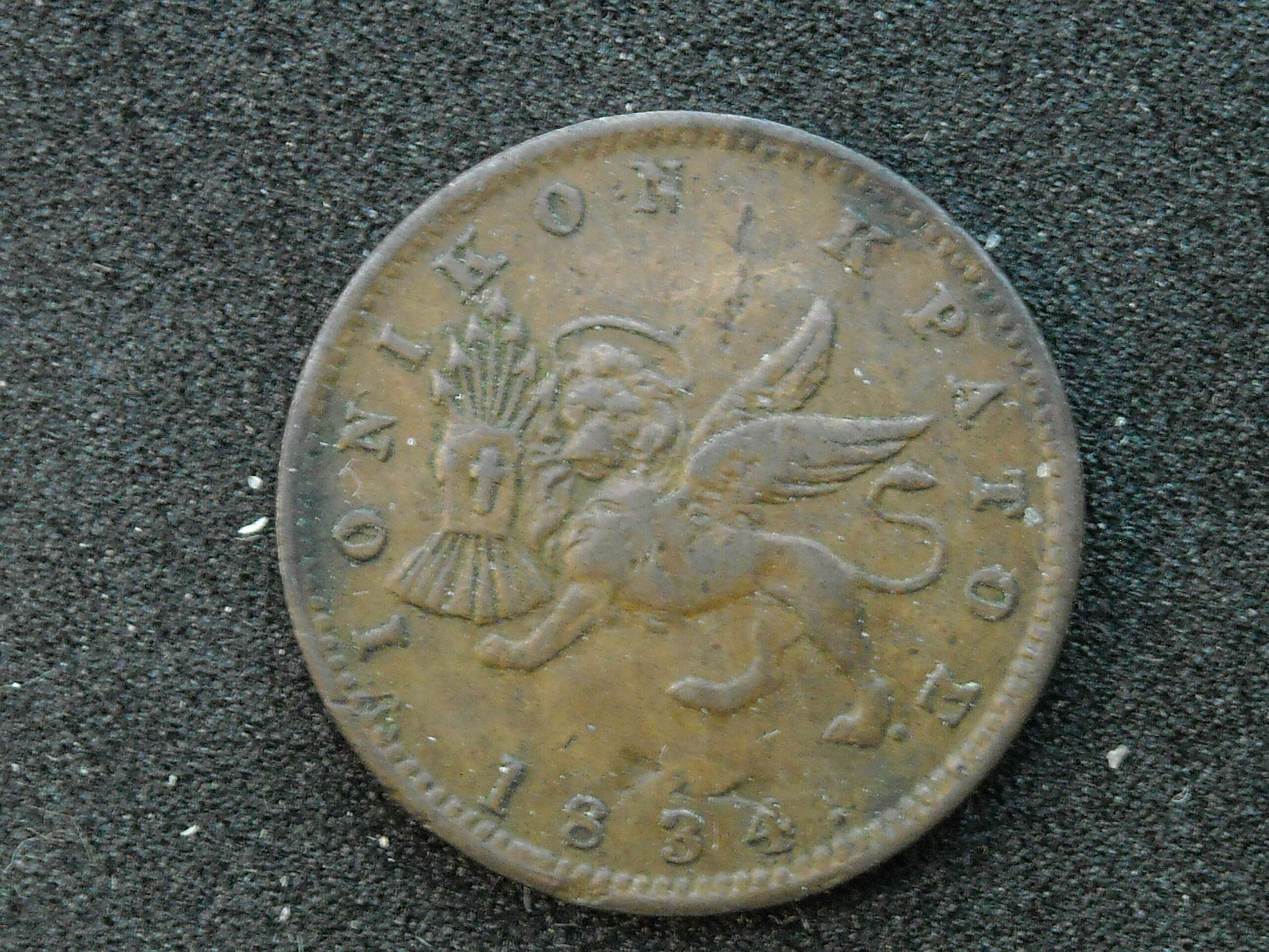 1834 New Obol “IONIAN ISLANDS STATE”. THE ASSESSMENT OF CURRENCY QUALITY IS SUBJECTIVE.