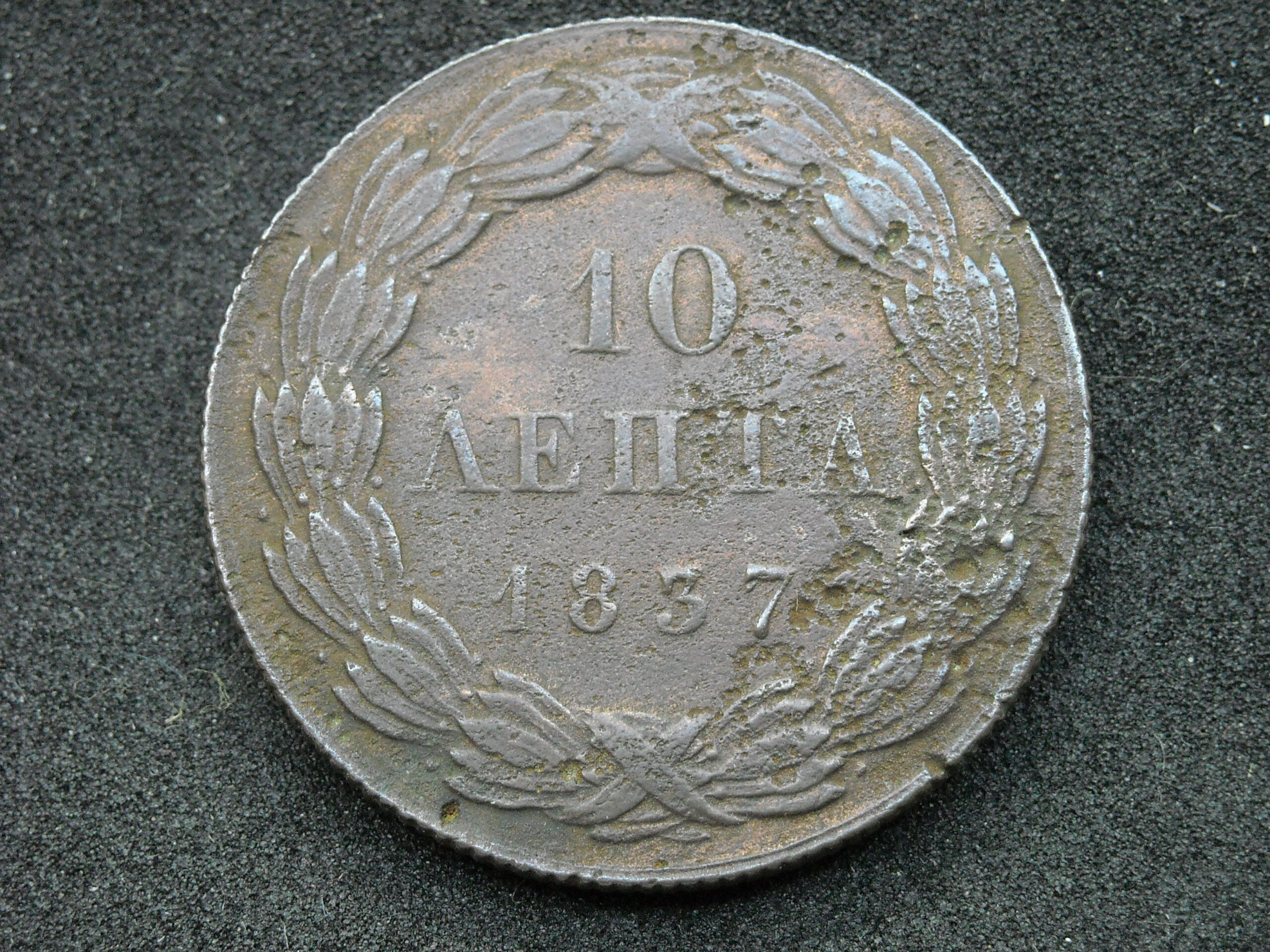 1837 10 LEPTA COIN “KINGDOM OF GREECE- KING OTTO”. COPPER COIN. THE QUALITY ASSESSMENT OF CURRENCY IS SUBJECTIVE.