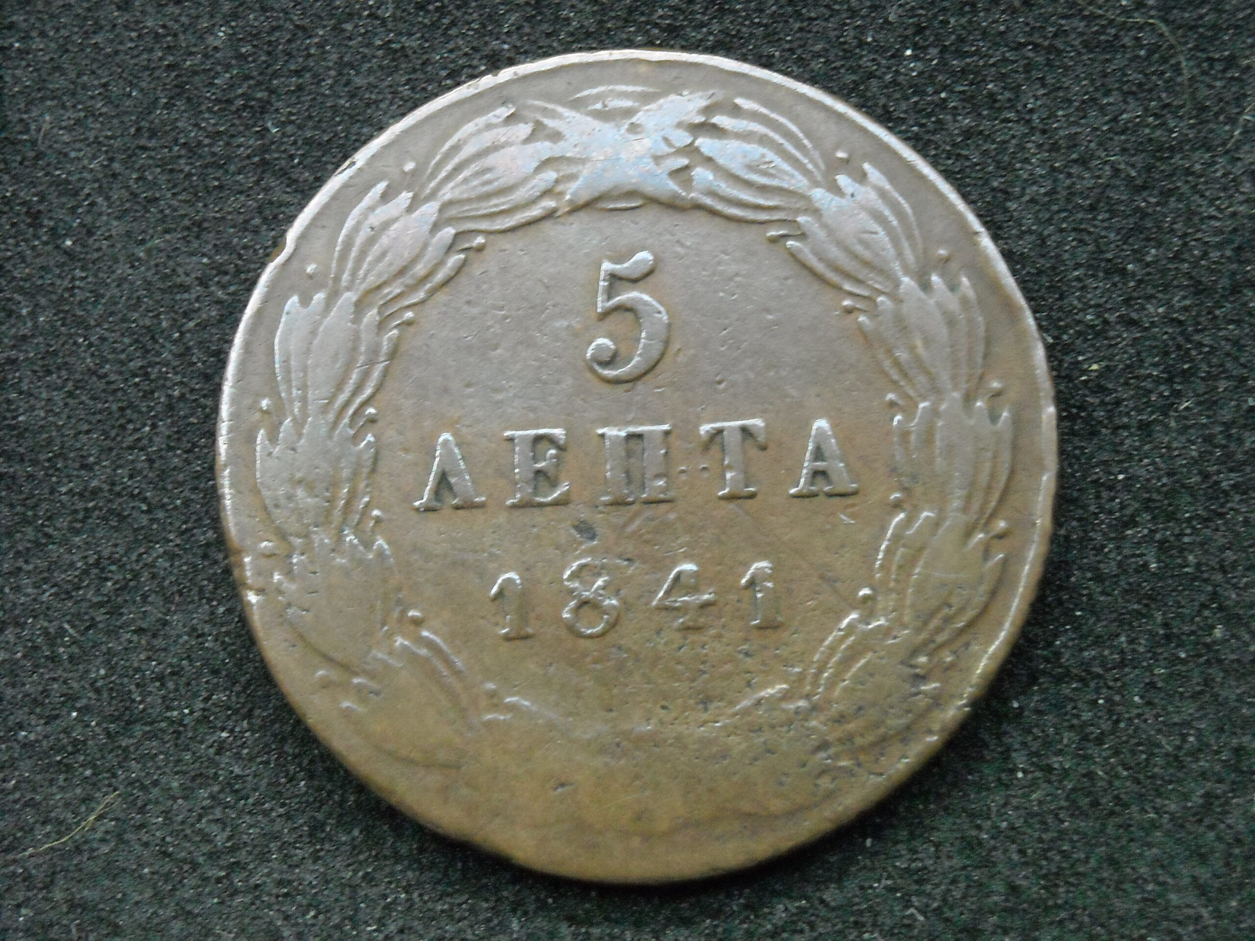 1841 5 LEPTA COIN “KINGDOM OF GREECE- KING OTTO”. COPPER COIN. THE QUALITY ASSESSMENT OF CURRENCY IS SUBJECTIVE.