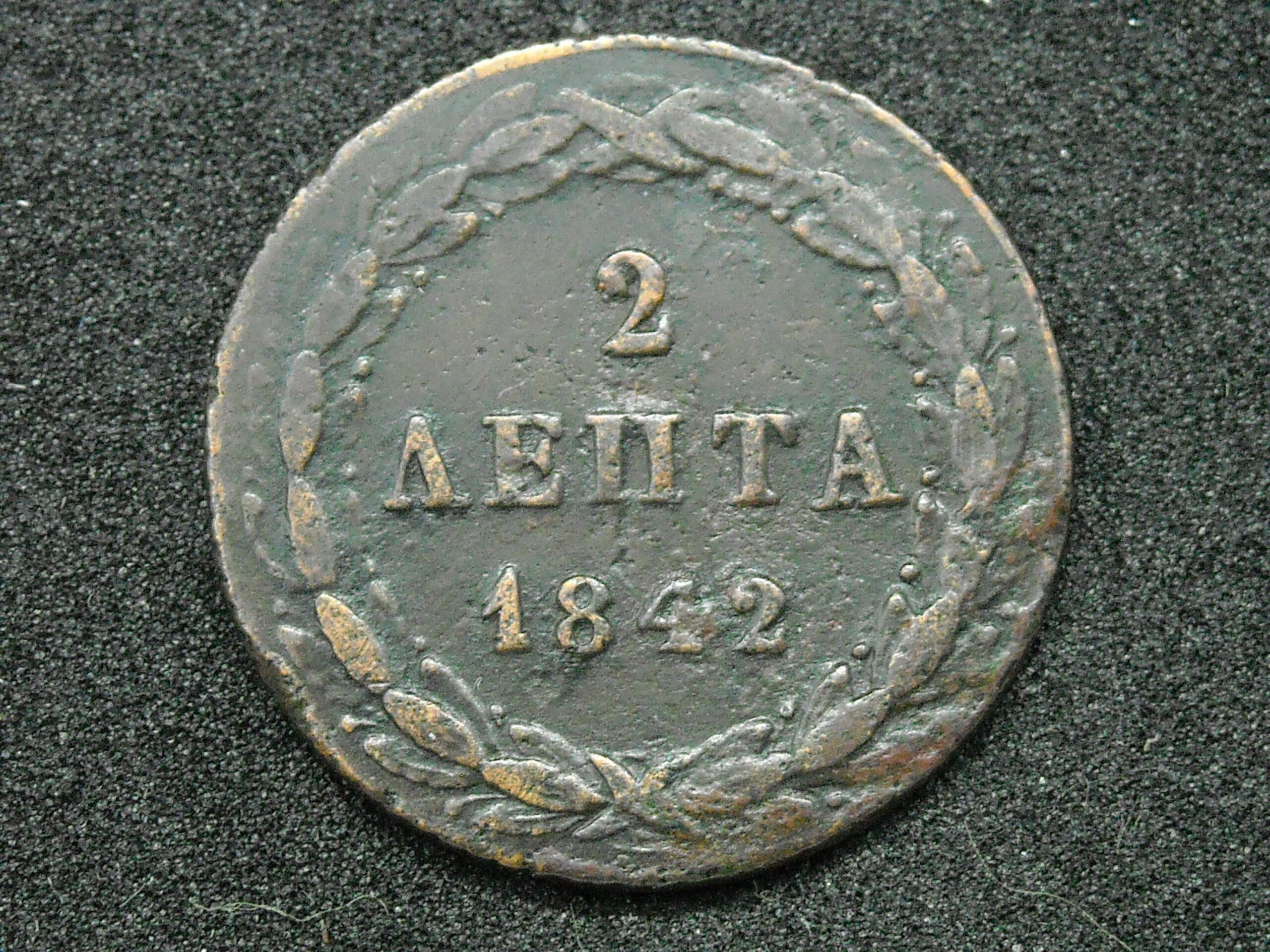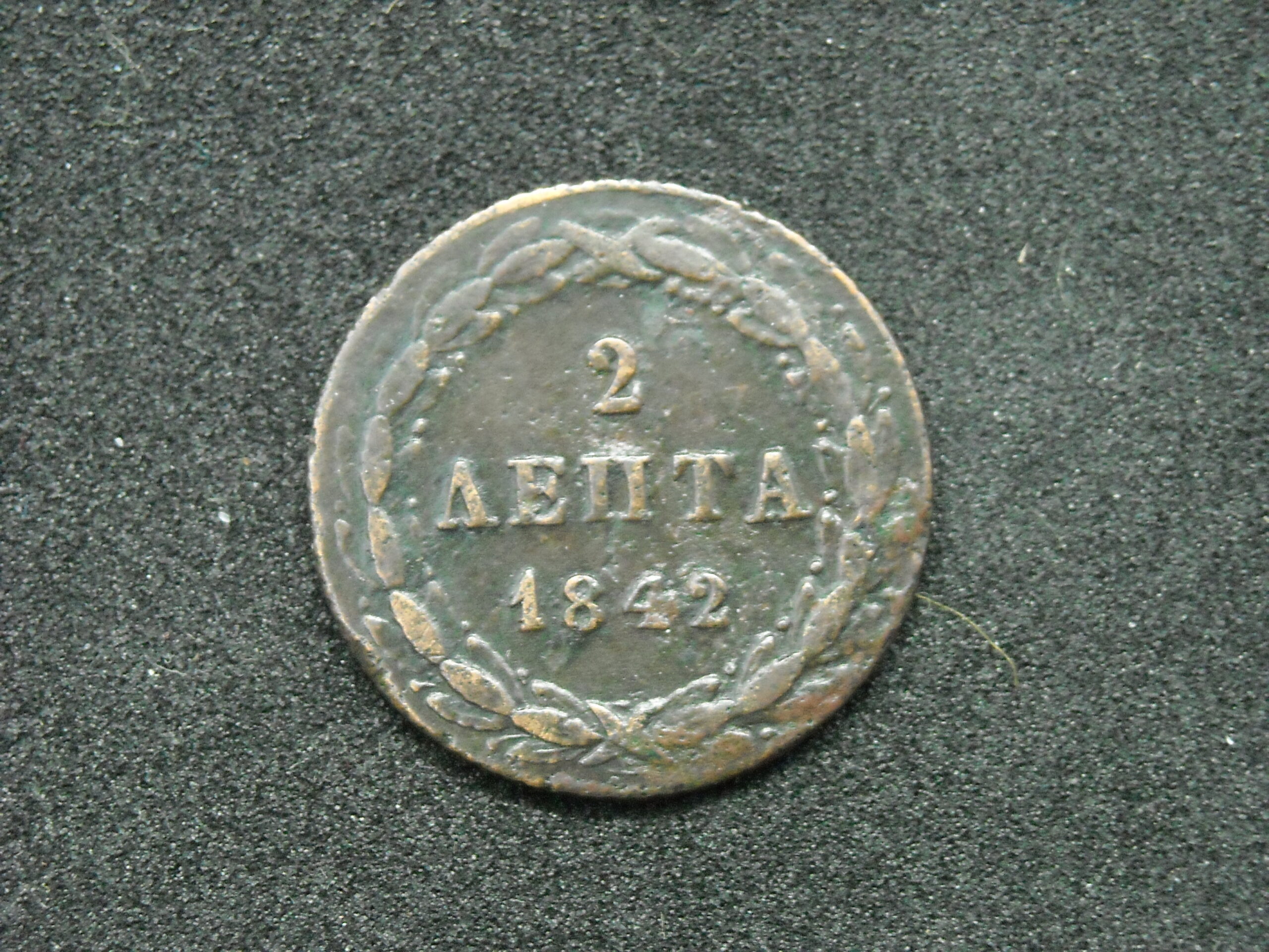 1842 2 LEPTA COIN “KINGDOM OF GREECE- KING OTTO”. COPPER COIN. THE QUALITY ASSESSMENT OF CURRENCY IS SUBJECTIVE.