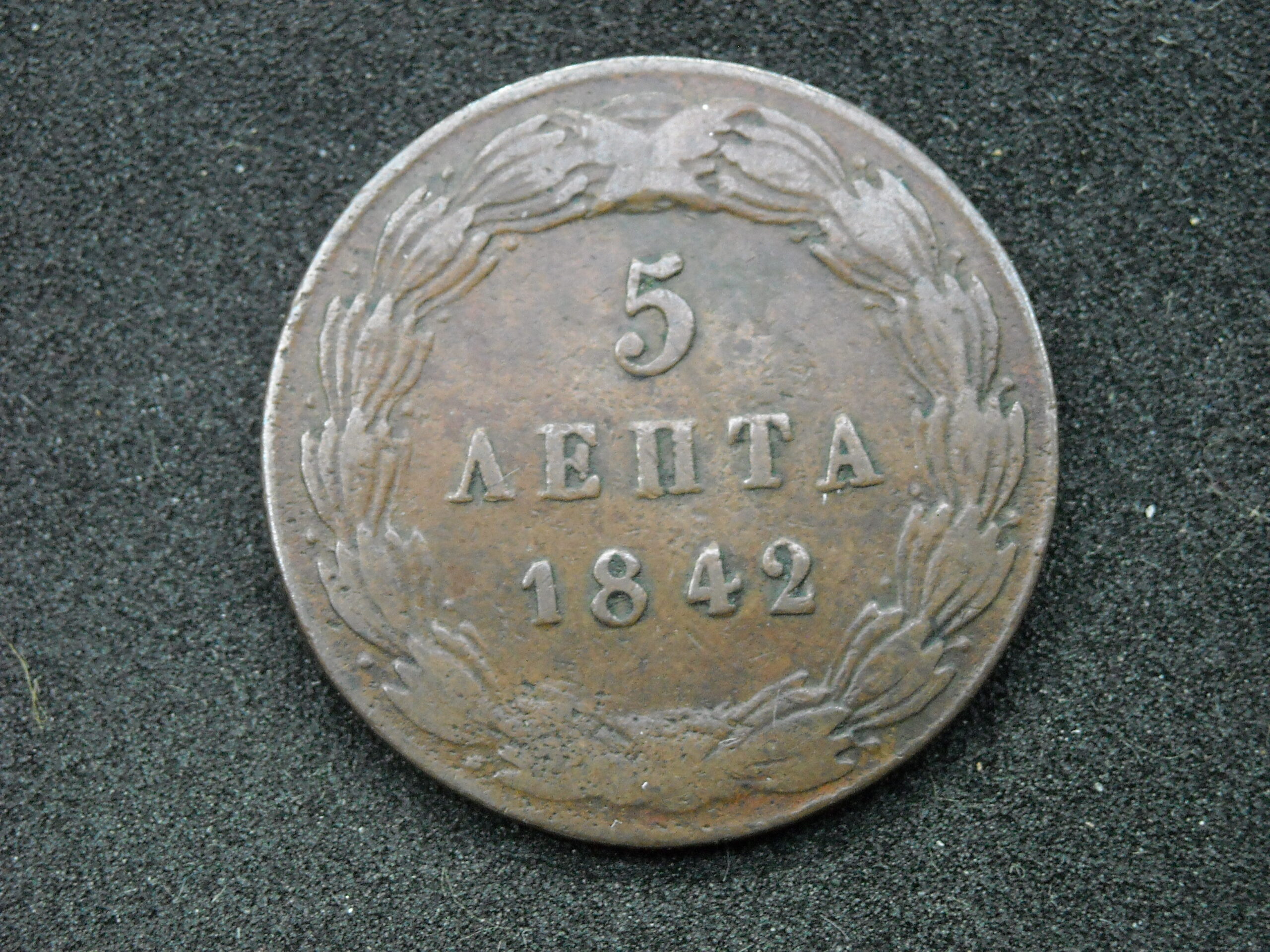1842 5 LEPTA COIN “KINGDOM OF GREECE- KING OTTO”. COPPER COIN. THE QUALITY ASSESSMENT OF CURRENCY IS SUBJECTIVE.