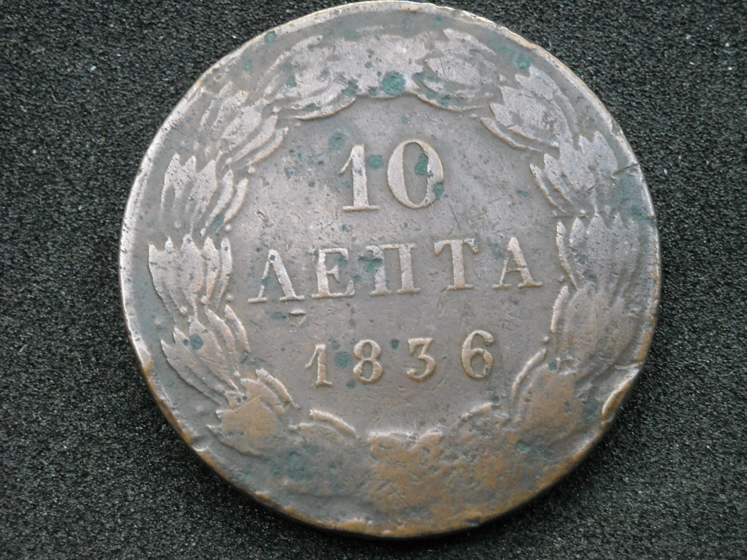 1836 10 LEPTA COIN “KINGDOM OF GREECE- KING OTTO”. COPPER COIN. THE QUALITY ASSESSMENT OF CURRENCY IS SUBJECTIVE.