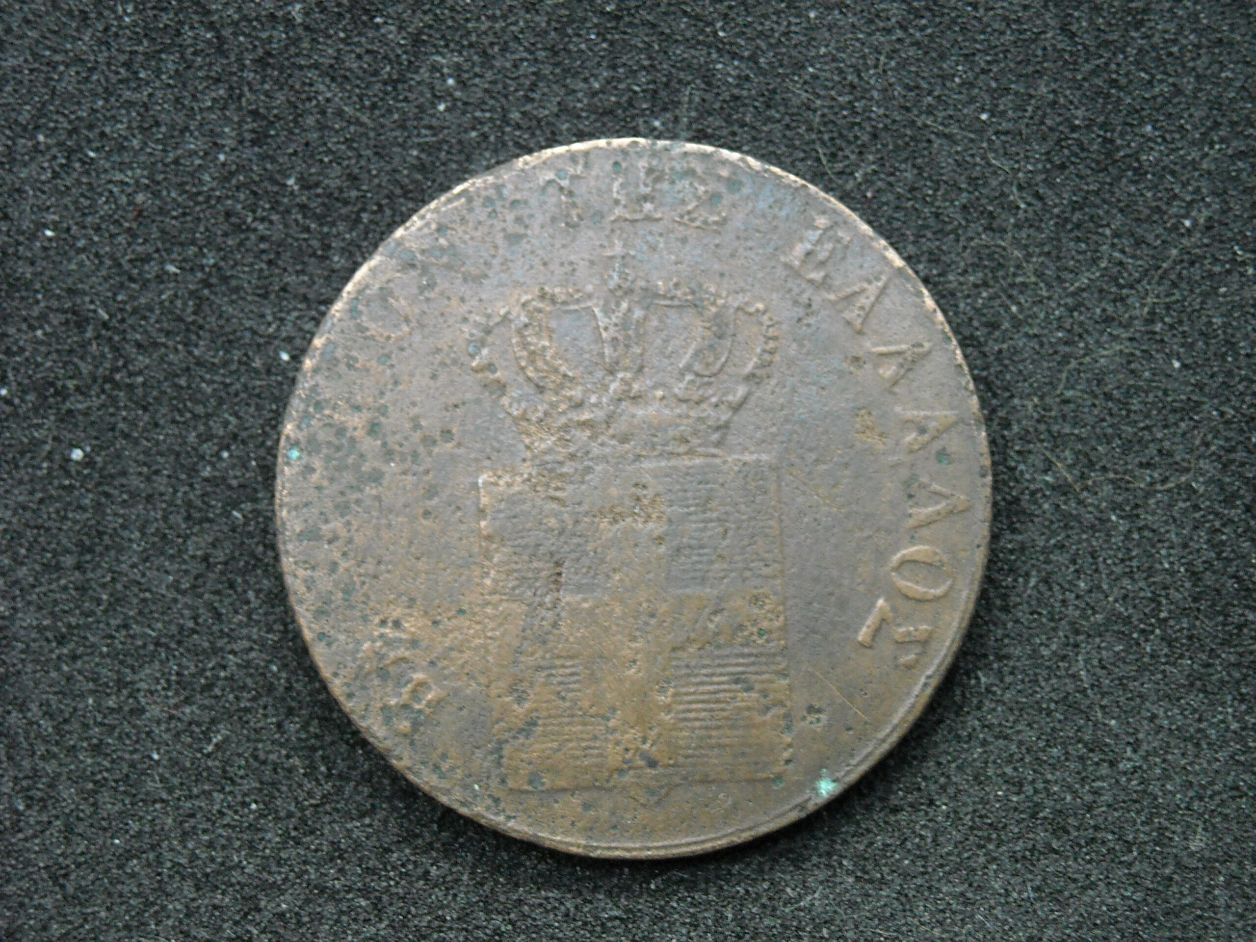 1845 5 LEPTA COIN “KINGDOM OF GREECE- KING OTTO”. COPPER COIN. THE QUALITY ASSESSMENT OF CURRENCY IS SUBJECTIVE.