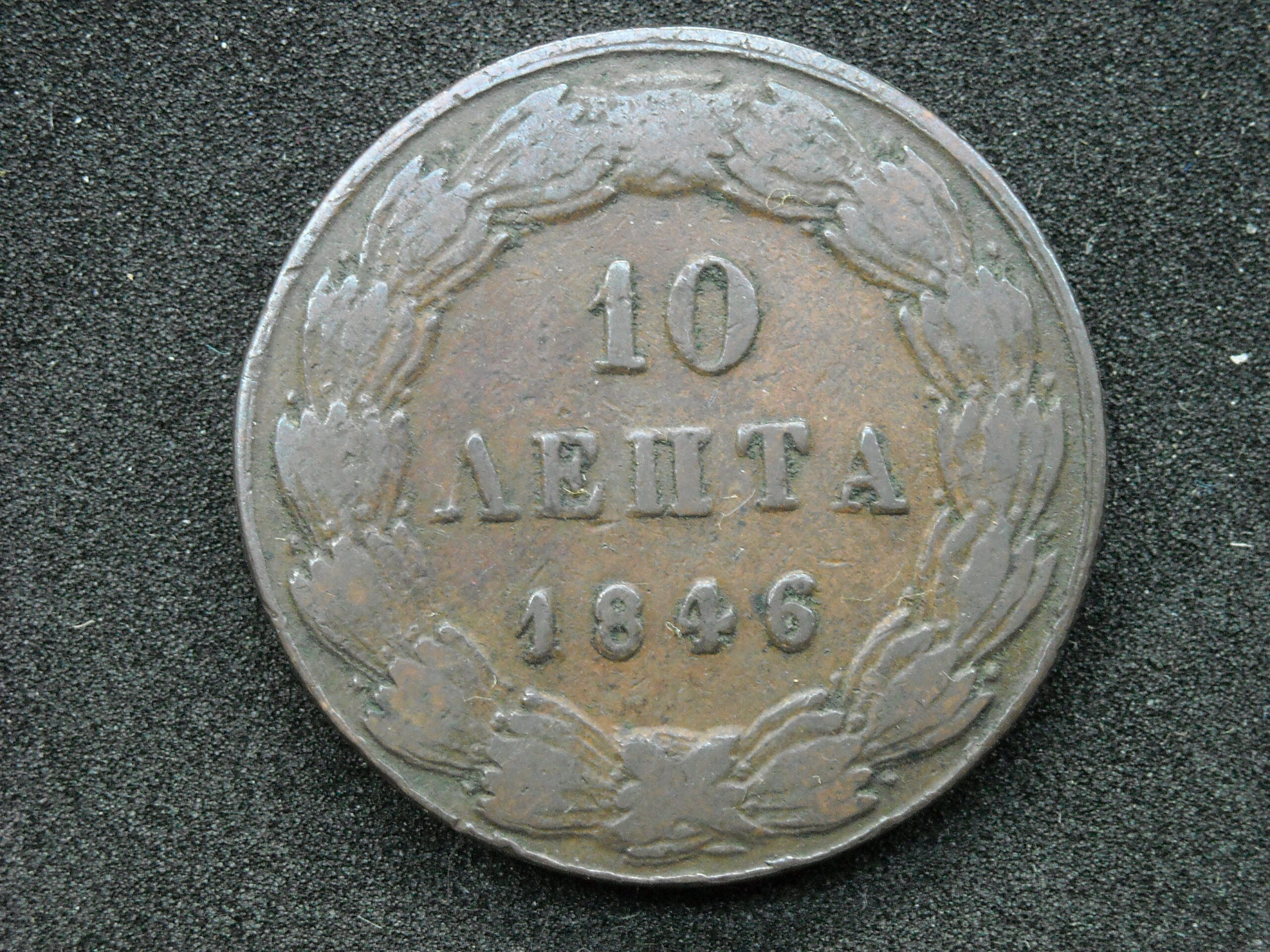1846 10 LEPTA COIN “KINGDOM OF GREECE- KING OTTO”. COPPER COIN. THE QUALITY ASSESSMENT OF CURRENCY IS SUBJECTIVE.