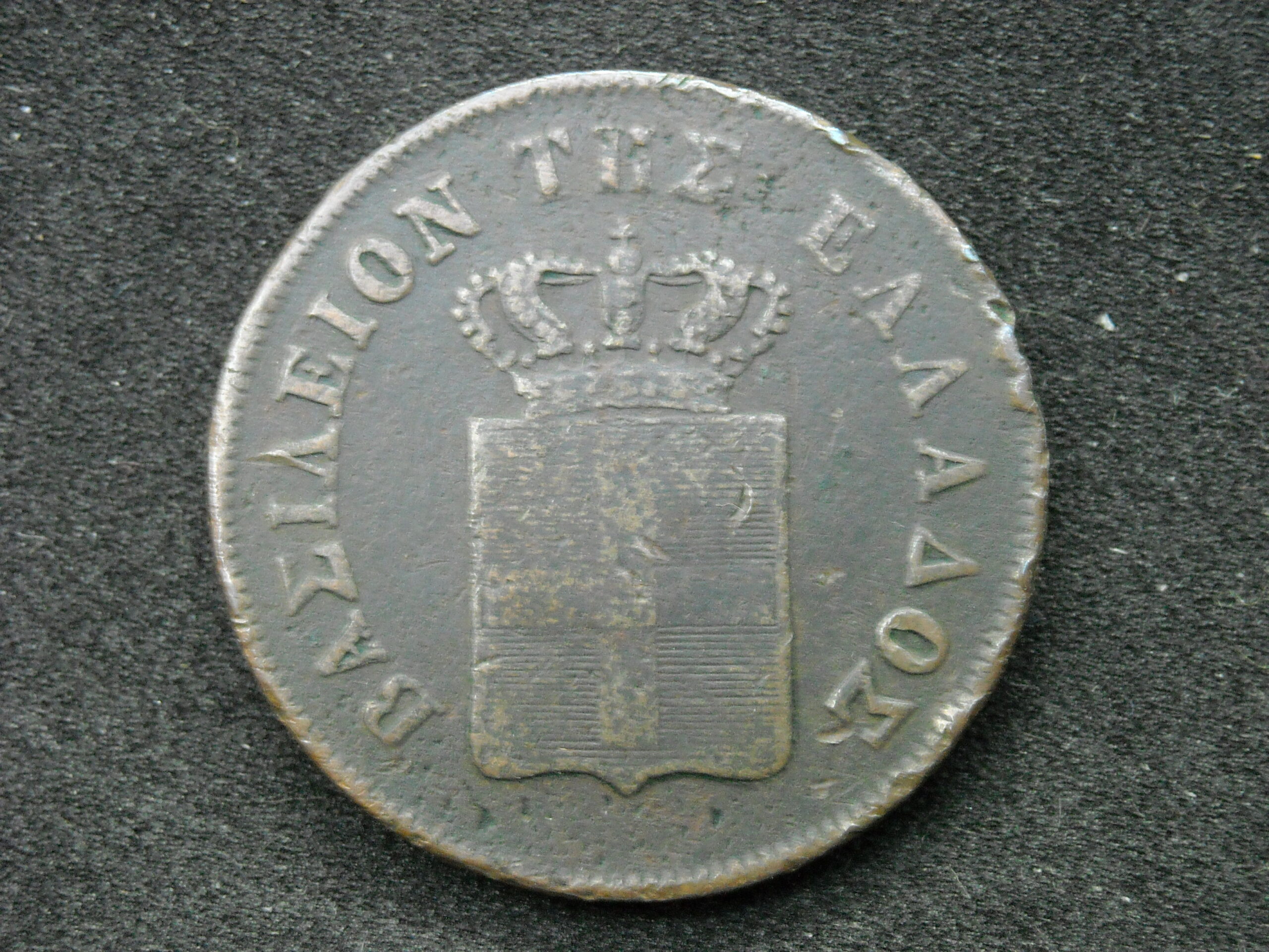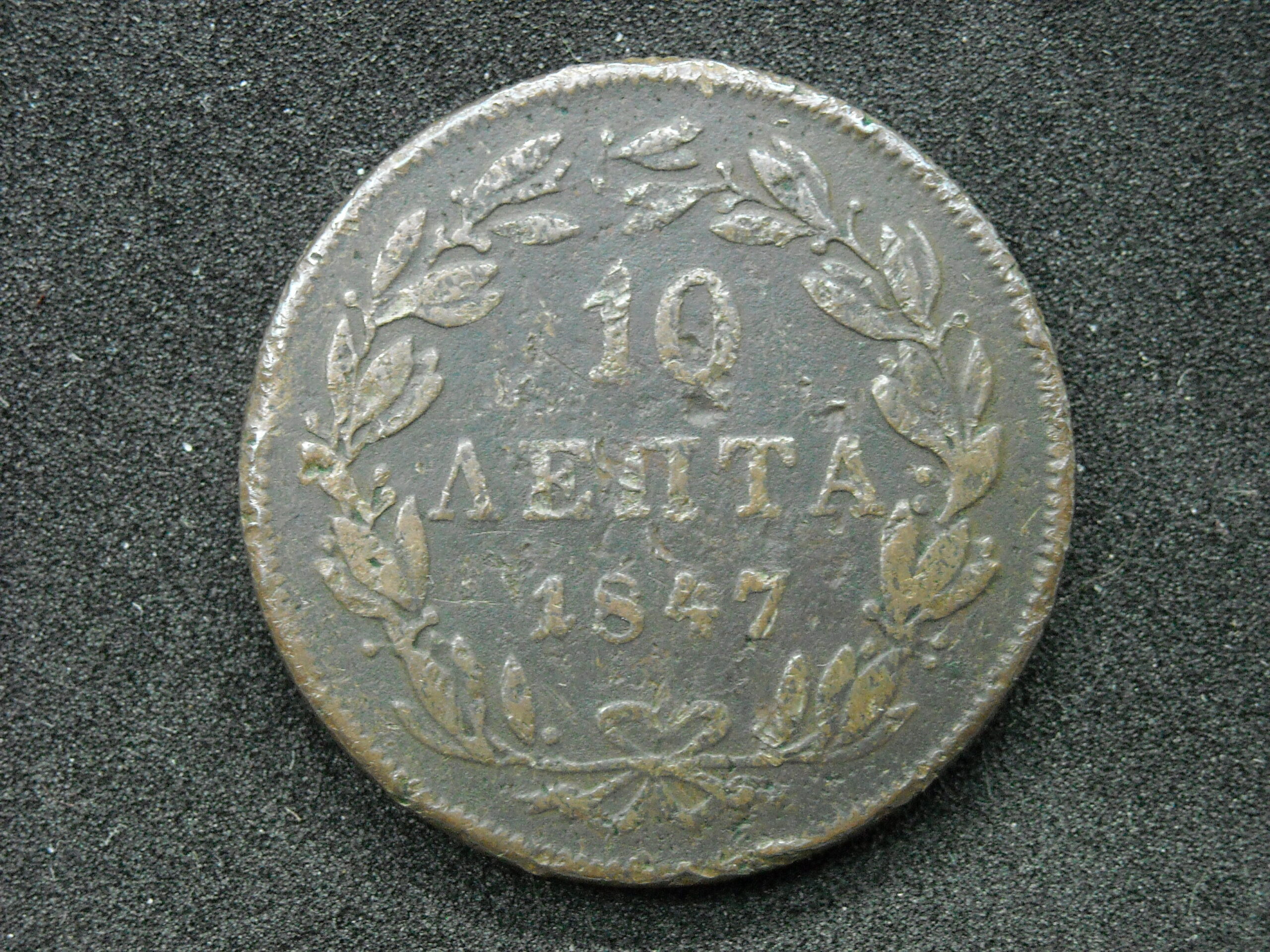 1847 10 LEPTA COIN “KINGDOM OF GREECE- KING OTTO”. COPPER COIN. THE QUALITY ASSESSMENT OF CURRENCY IS SUBJECTIVE.