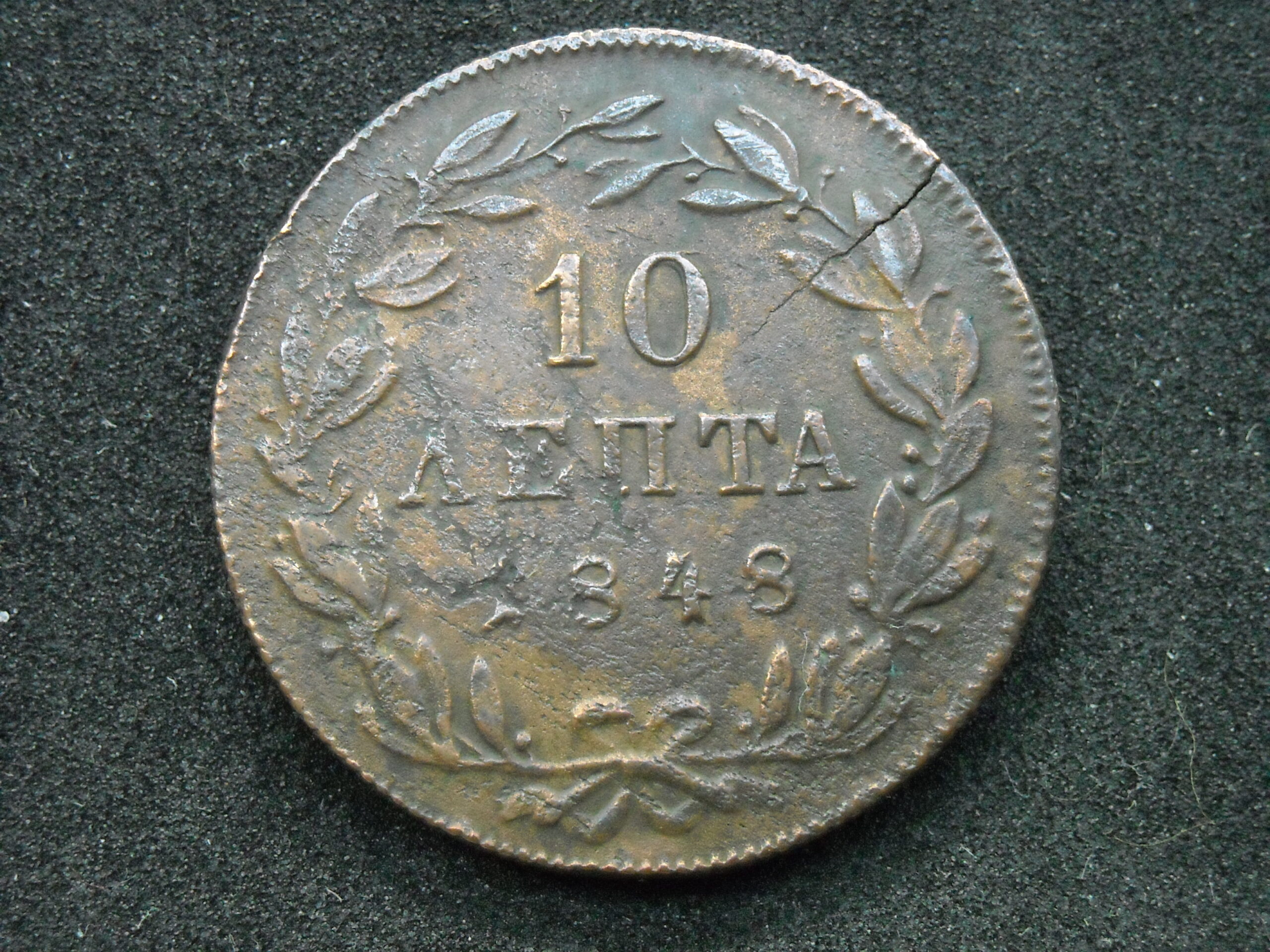 1848 10 LEPTA COIN “KINGDOM OF GREECE- KING OTTO”. COPPER COIN. THE QUALITY ASSESSMENT OF CURRENCY IS SUBJECTIVE.