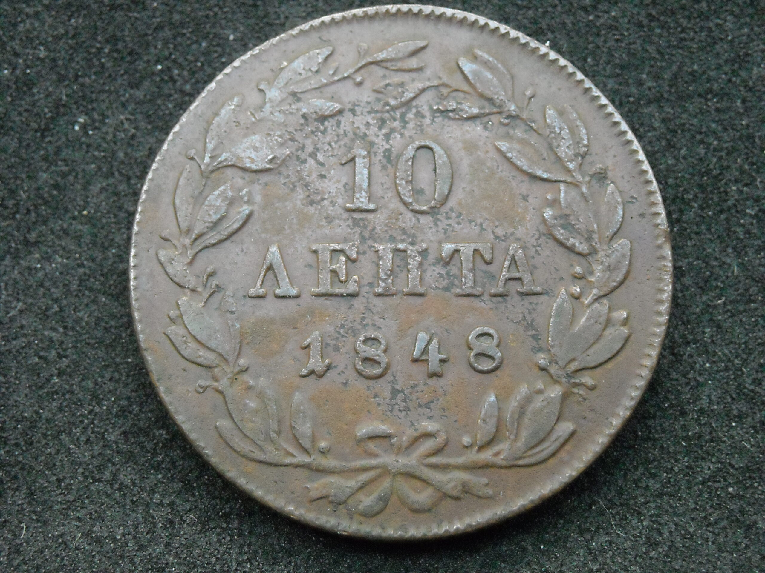 1848 10 LEPTA COIN “KINGDOM OF GREECE- KING OTTO”. COPPER COIN. THE QUALITY ASSESSMENT OF CURRENCY IS SUBJECTIVE.