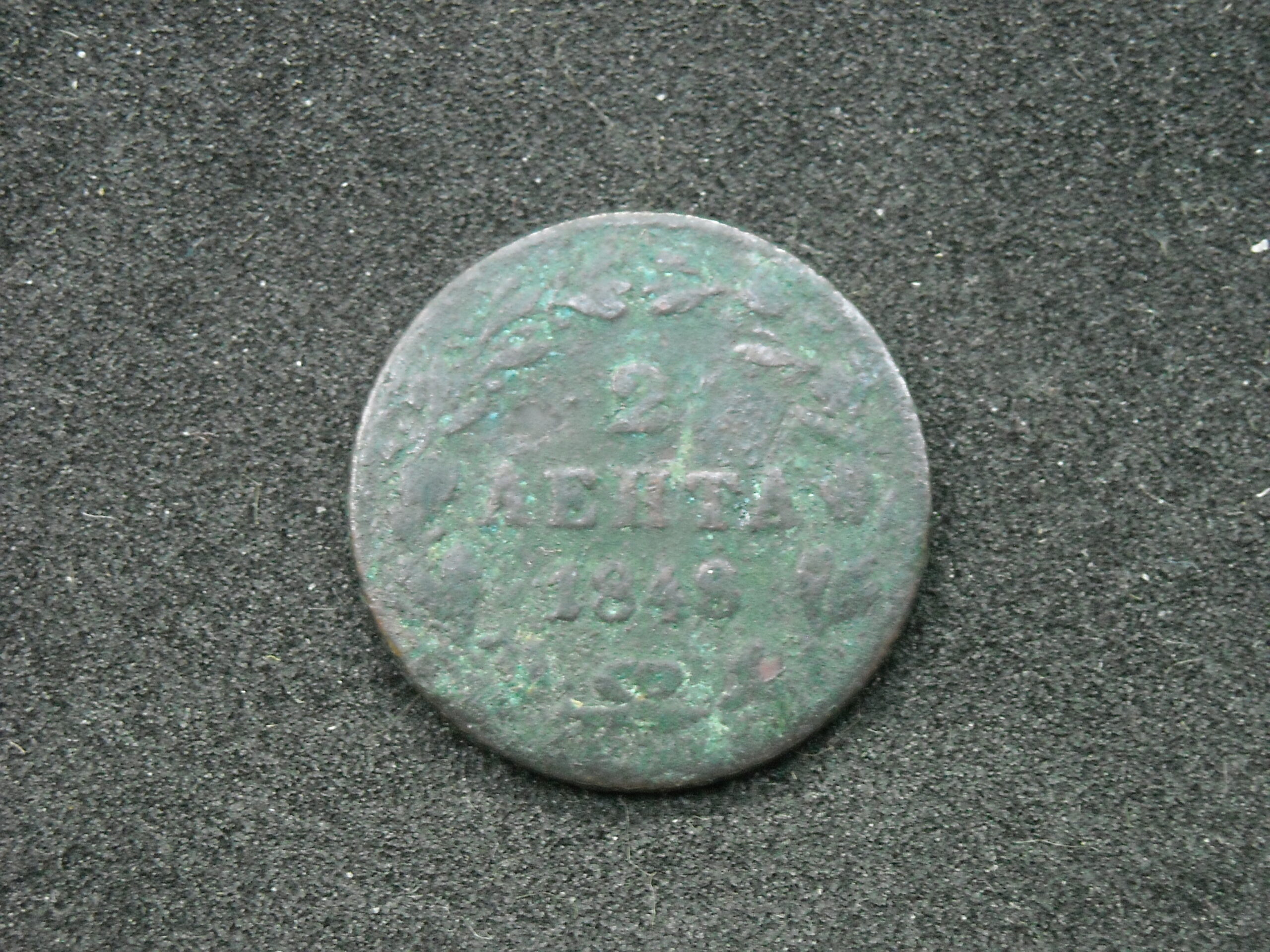 1848 2 LEPTA COIN “KINGDOM OF GREECE- KING OTTO”. COPPER COIN. THE QUALITY ASSESSMENT OF CURRENCY IS SUBJECTIVE.