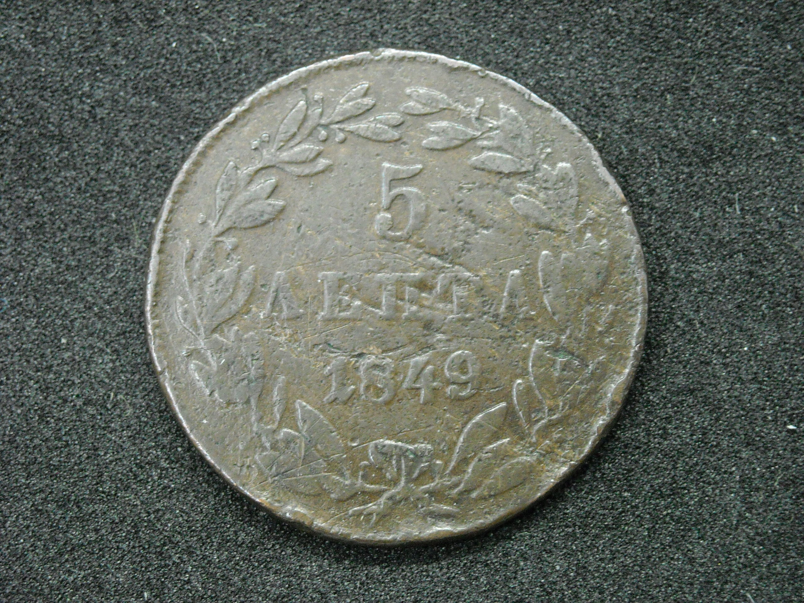 1849 5 LEPTA COIN “KINGDOM OF GREECE- KING OTTO”. COPPER COIN. THE QUALITY ASSESSMENT OF CURRENCY IS SUBJECTIVE.