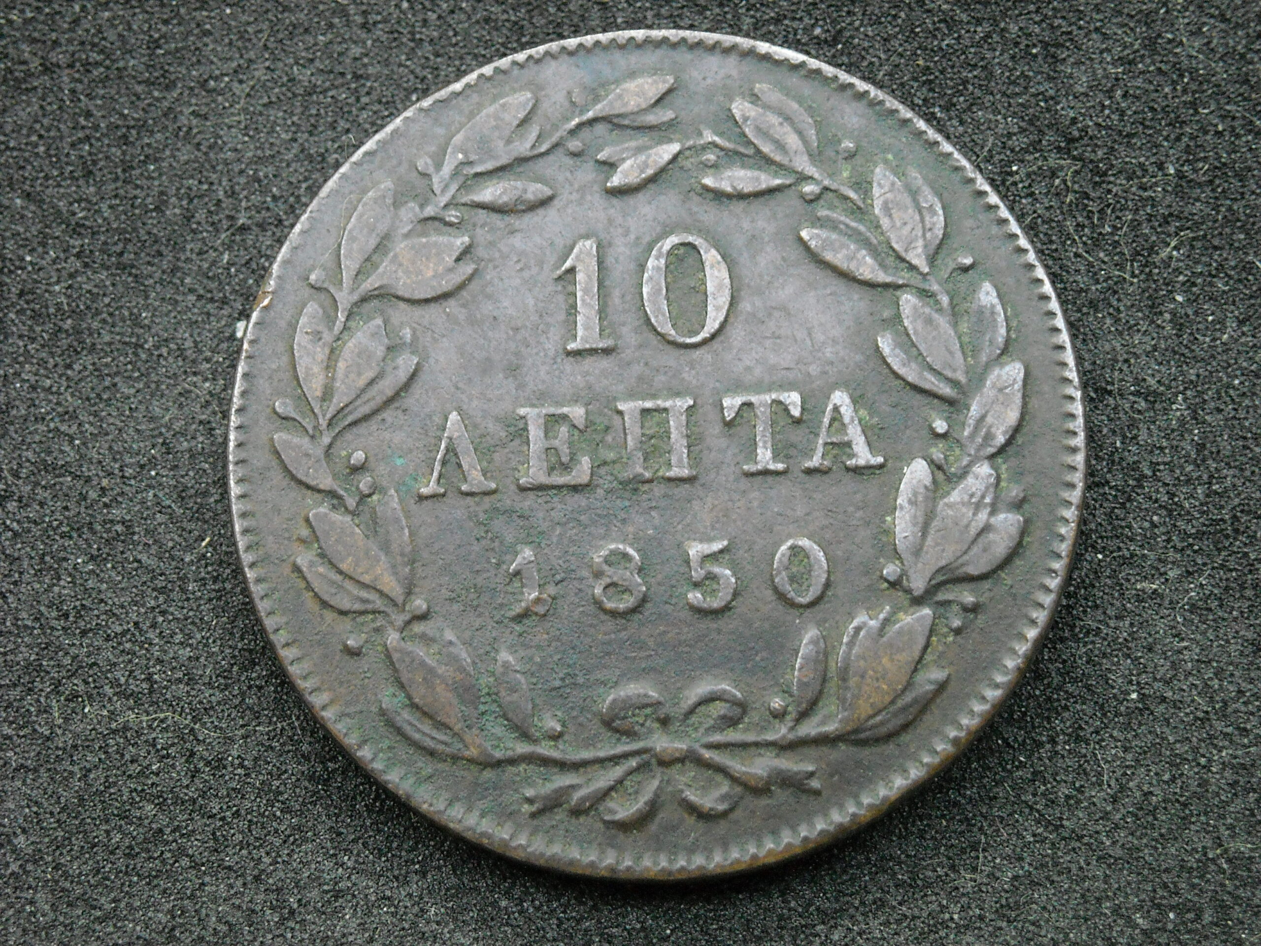 1850 10 LEPTA COIN “KINGDOM OF GREECE- KING OTTO”. COPPER COIN. THE QUALITY ASSESSMENT OF CURRENCY IS SUBJECTIVE.