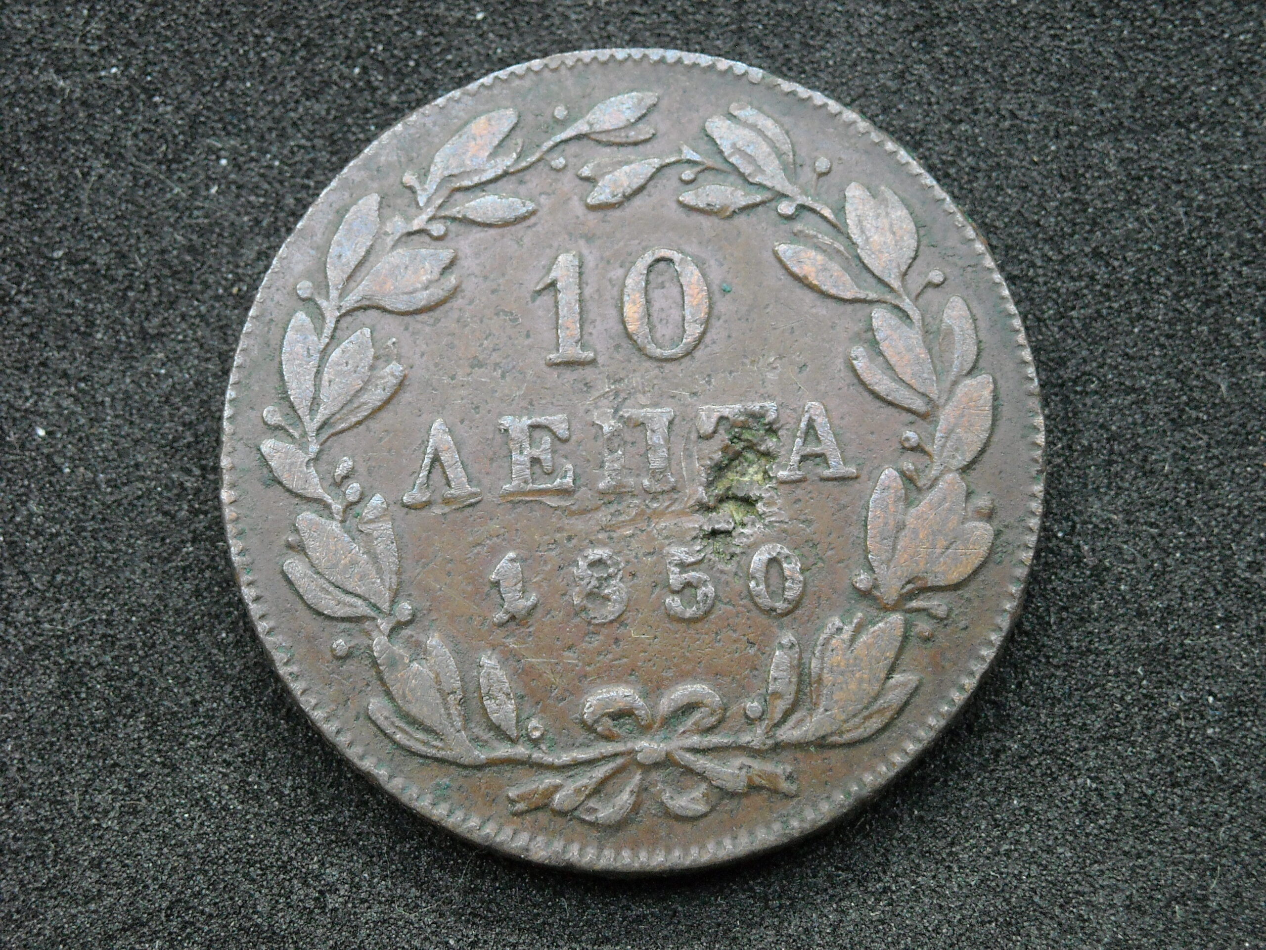 1850 10 LEPTA COIN “KINGDOM OF GREECE- KING OTTO”. COPPER COIN. THE QUALITY ASSESSMENT OF CURRENCY IS SUBJECTIVE.