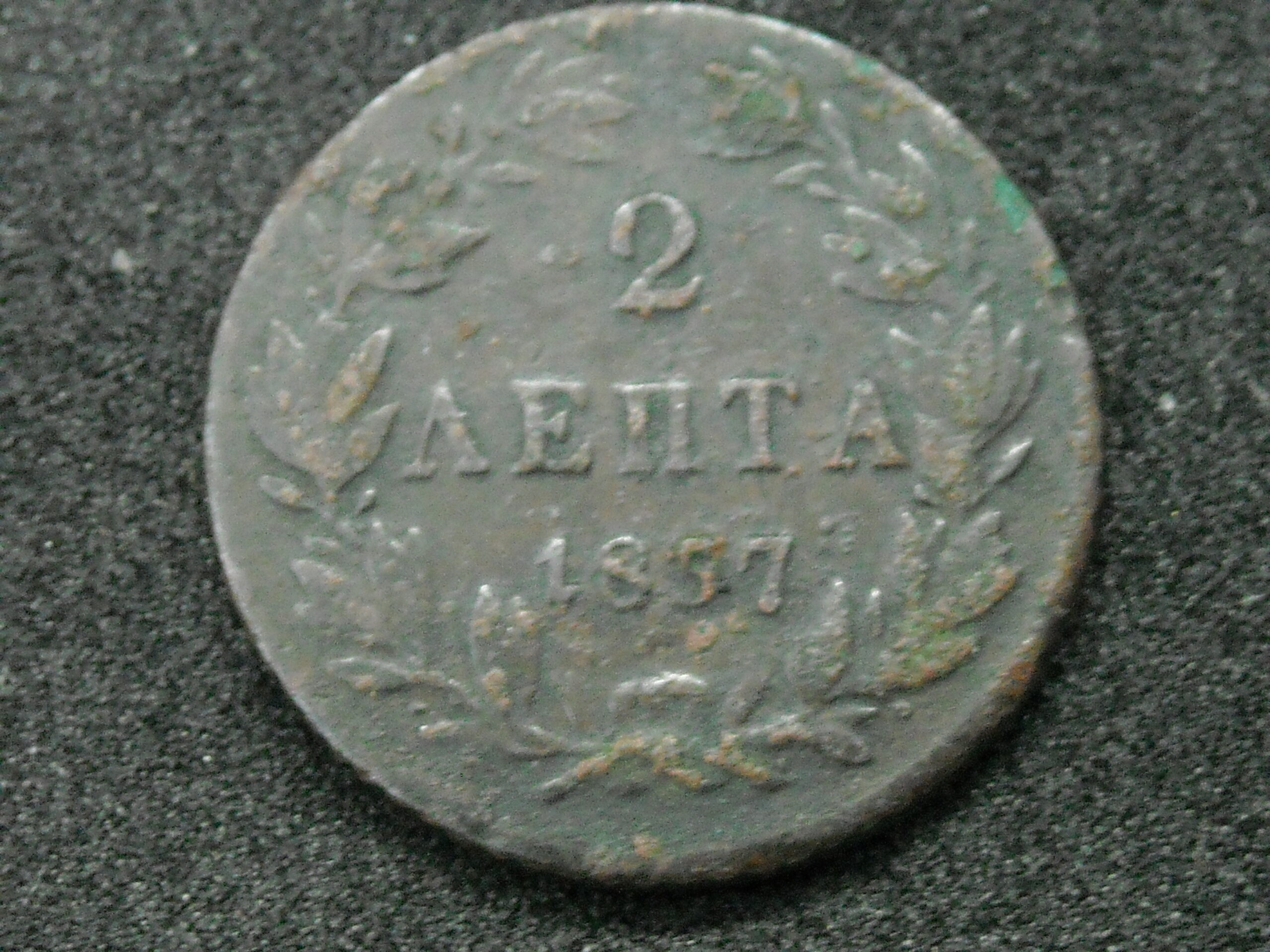 1857 2 LEPTA COIN “KINGDOM OF GREECE- KING OTTO”. COPPER COIN. THE QUALITY ASSESSMENT OF CURRENCY IS SUBJECTIVE.