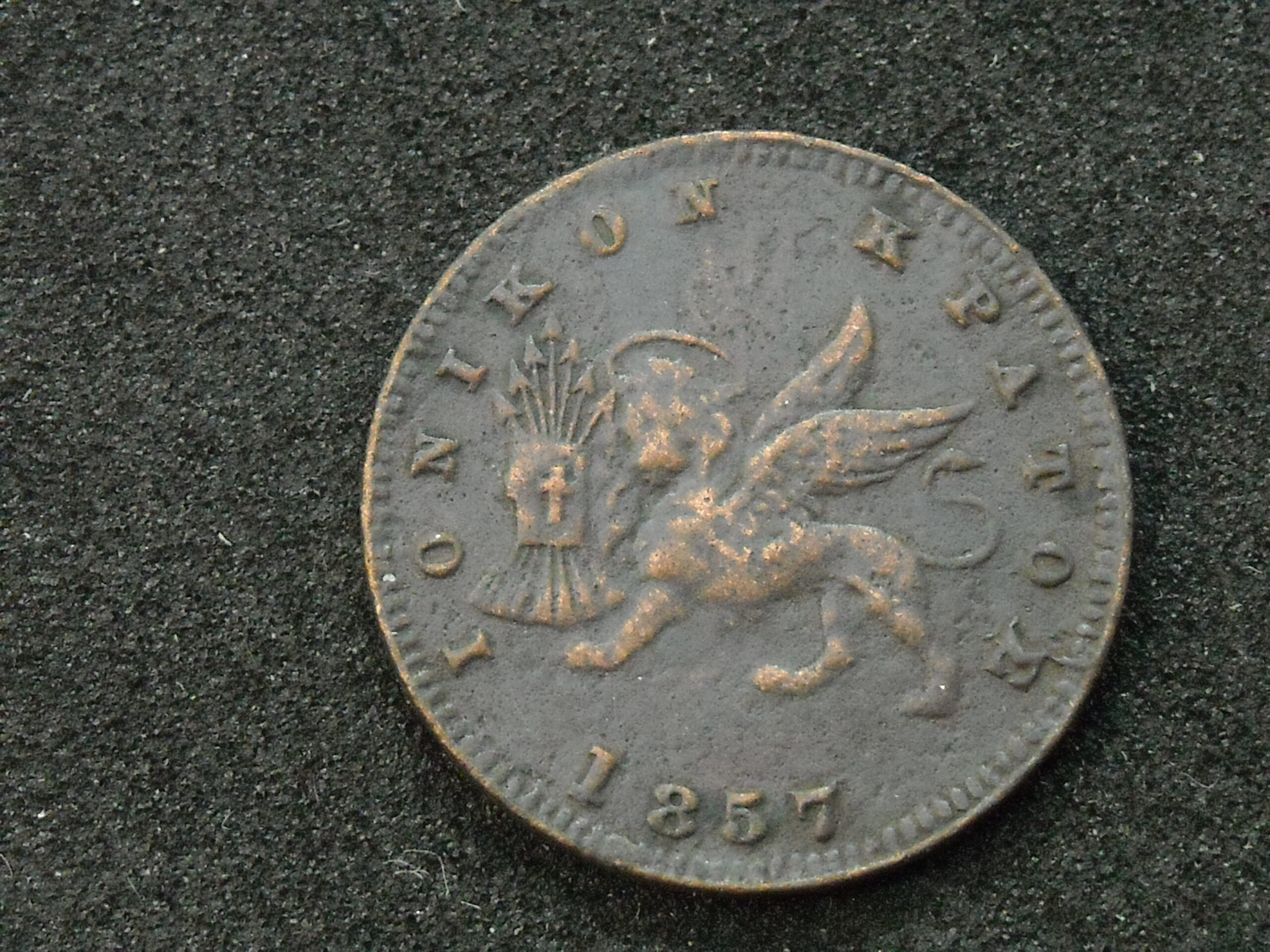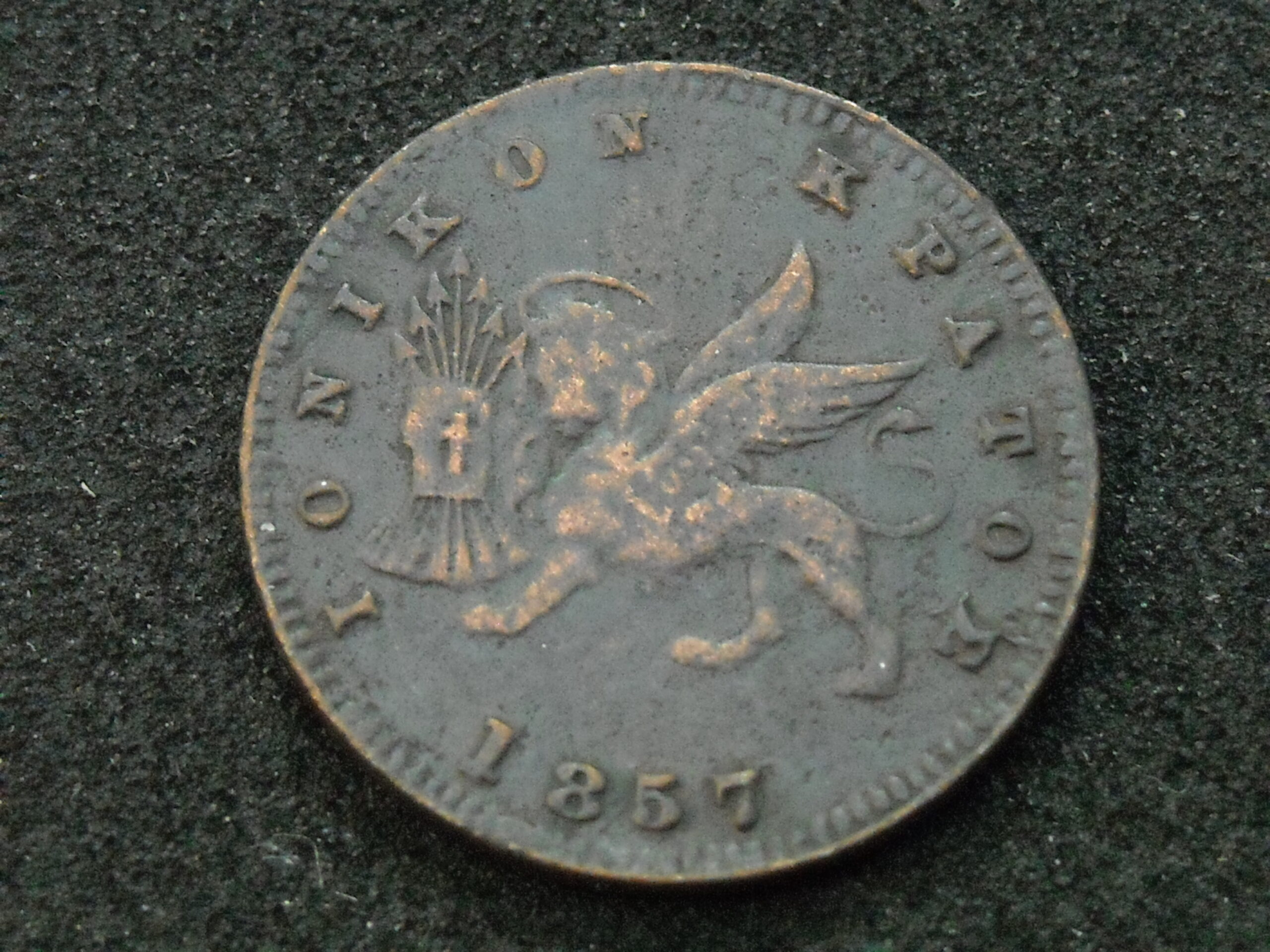 1857 New Obol “IONIAN ISLANDS STATE”. THE ASSESSMENT OF CURRENCY QUALITY IS SUBJECTIVE.