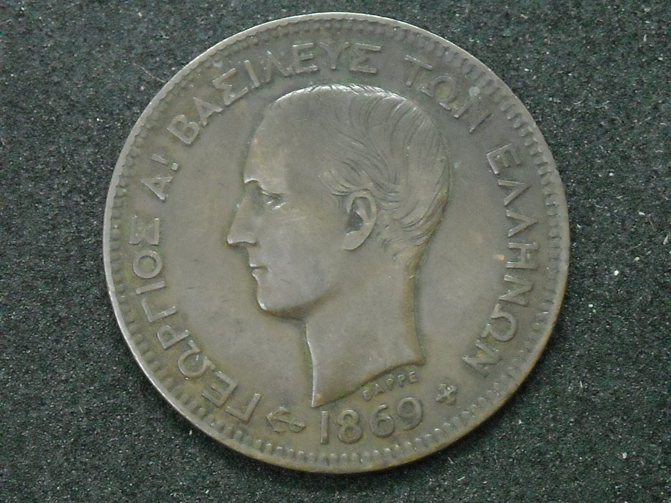 1869 5 LEPTA COIN OF KING GEORGE I. THE QUALITY ASSESSMENT OF CURRENCY IS SUBJECTIVE.