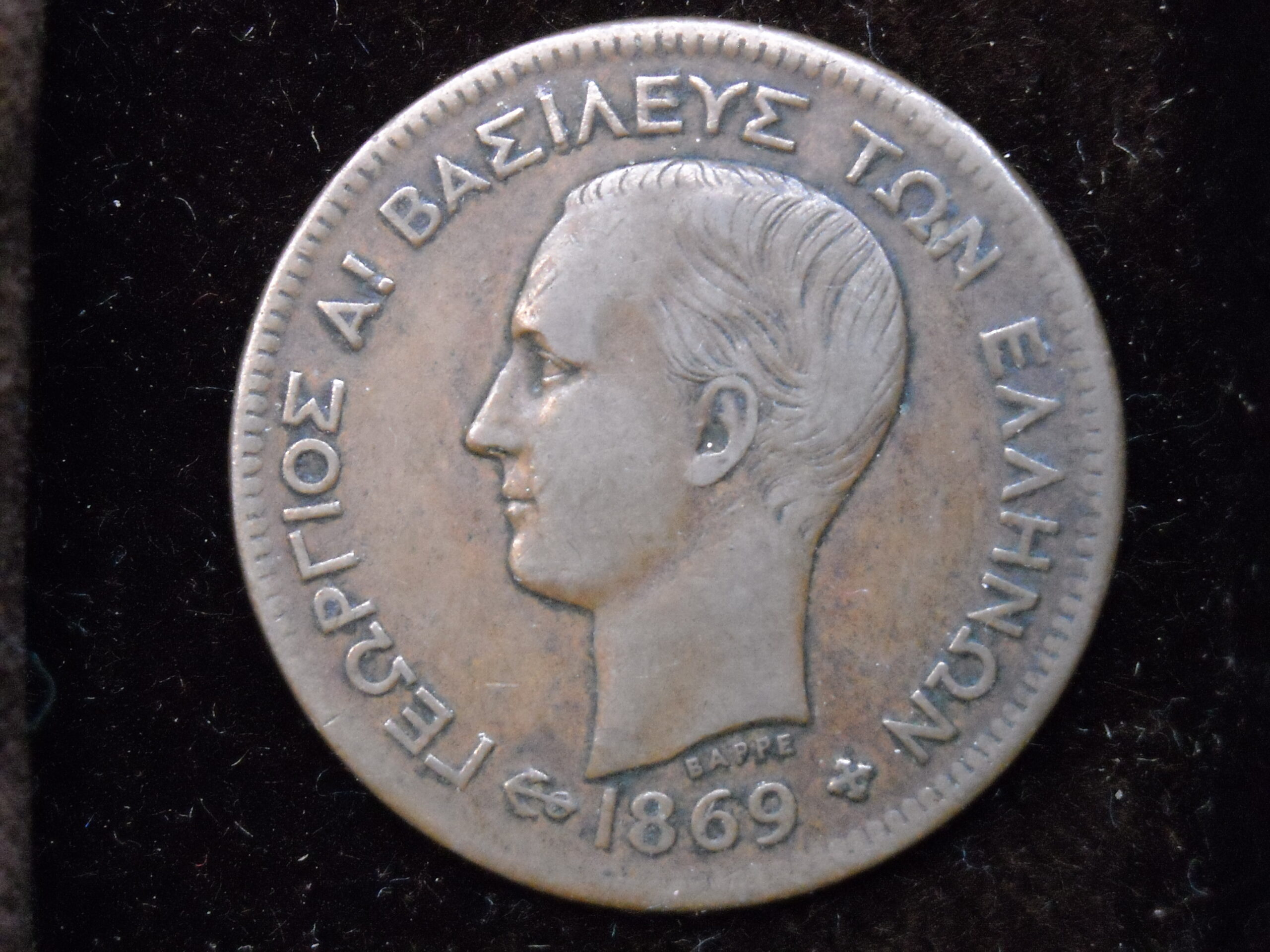 1869 5 LEPTA COIN OF KING GEORGE I. THE ASSESSMENT OF CURRENCY QUALITY IS SUBJECTIVE.