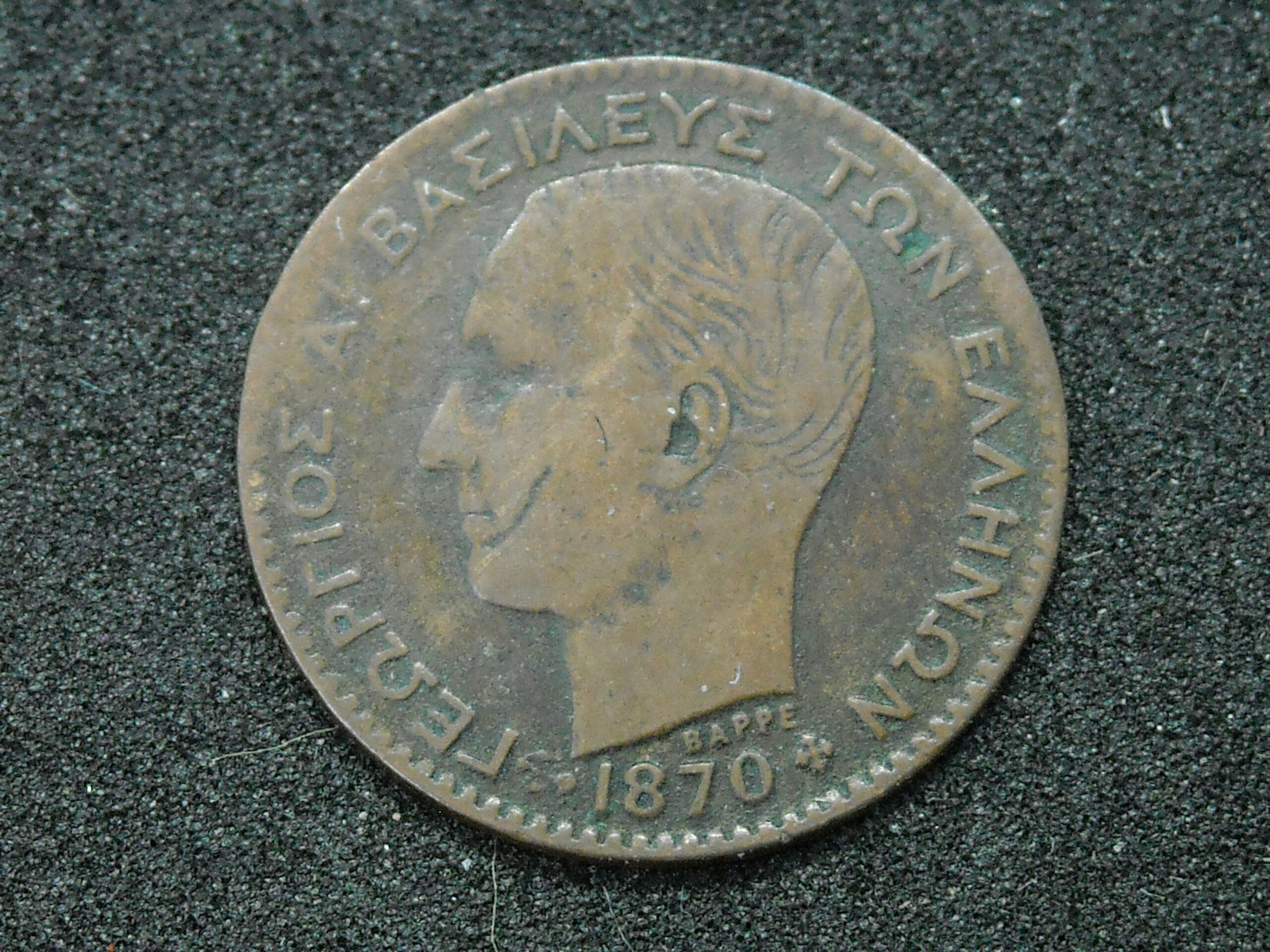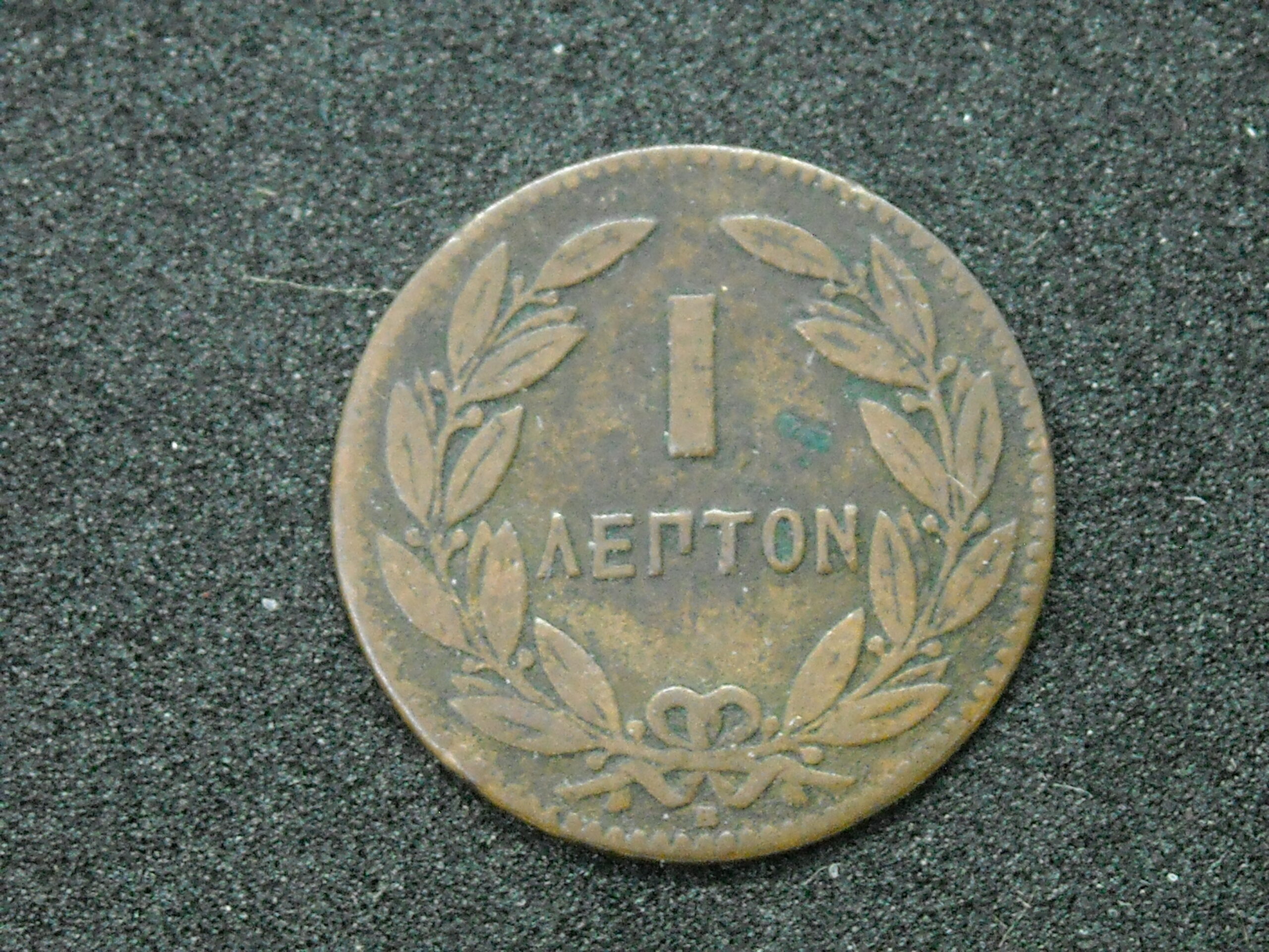 1870 ONE LEPTA COIN OF KING GEORGE I. THE QUALITY ASSESSMENT OF CURRENCY IS SUBJECTIVE.