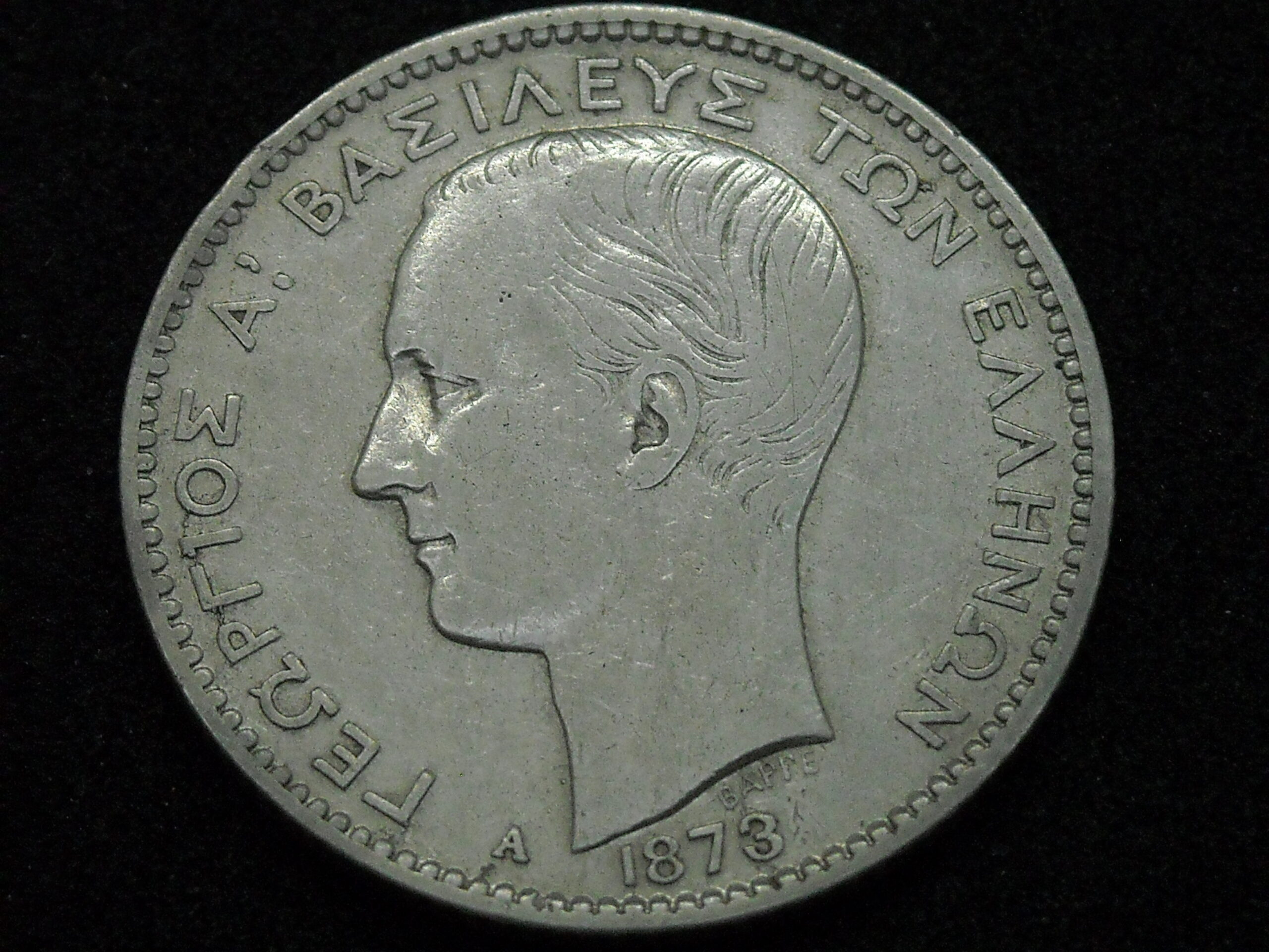 1873 DRACHMA (.835 SILVER COIN) OF KING GEORGE I. THE QUALITY ASSESSMENT OF CURRENCY IS SUBJECTIVE.