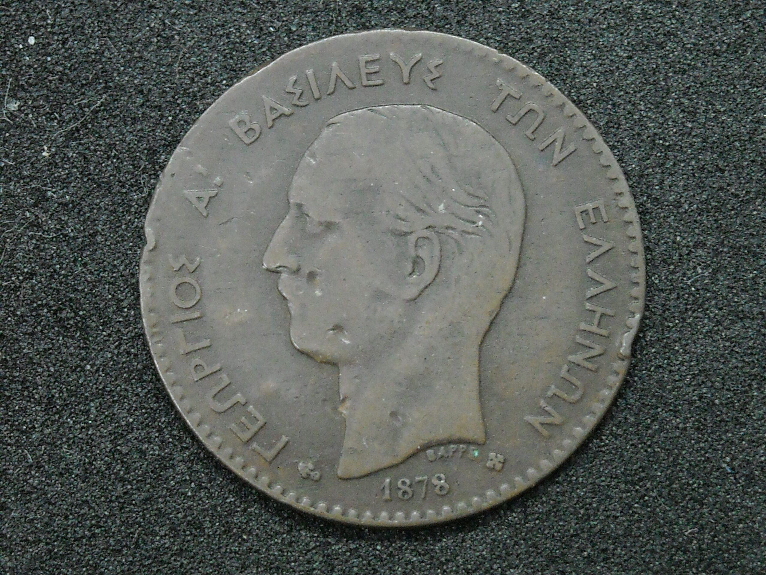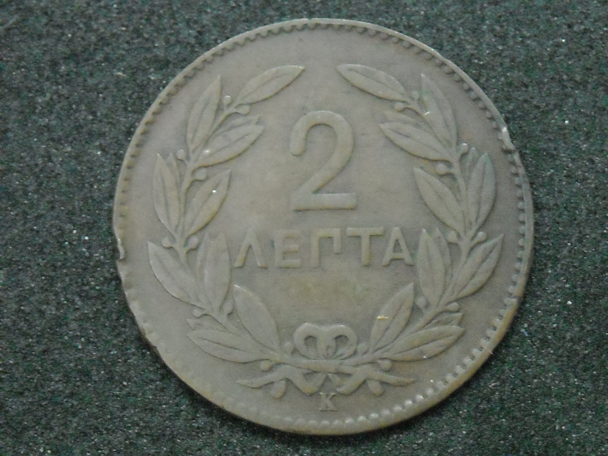 1878 2 LEPTA (SMALL ANCHOR) COIN OF KING GEORGE I. THE QUALITY ASSESSMENT OF CURRENCY IS SUBJECTIVE.