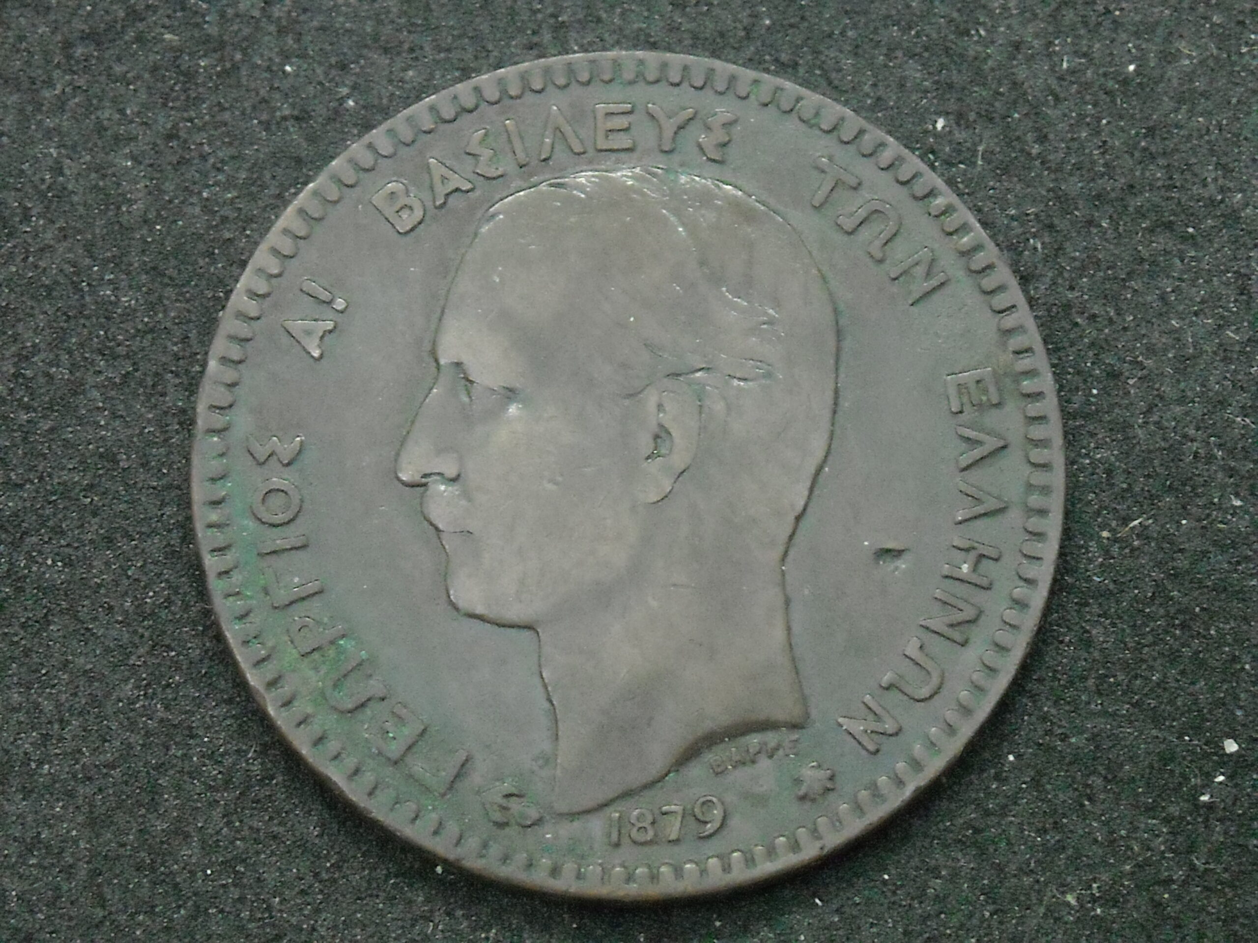 1879 10 LEPTA COIN OF KING GEORGE I. THE QUALITY ASSESSMENT OF CURRENCY IS SUBJECTIVE.