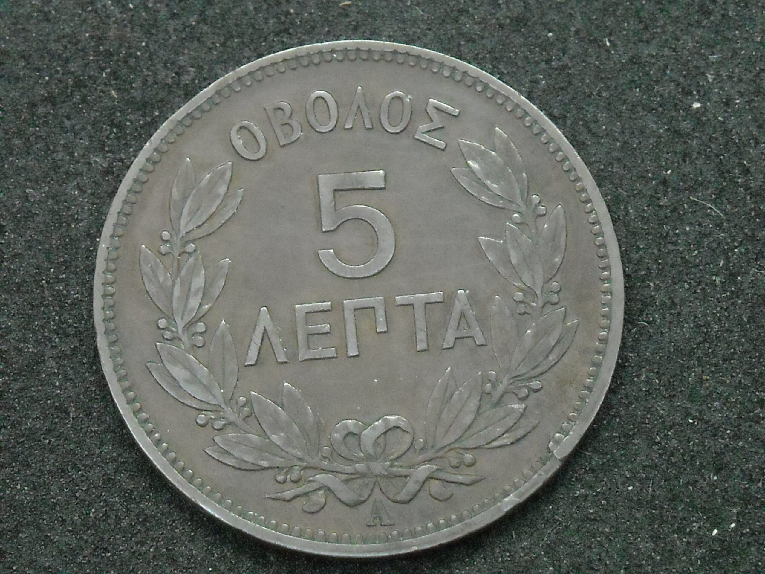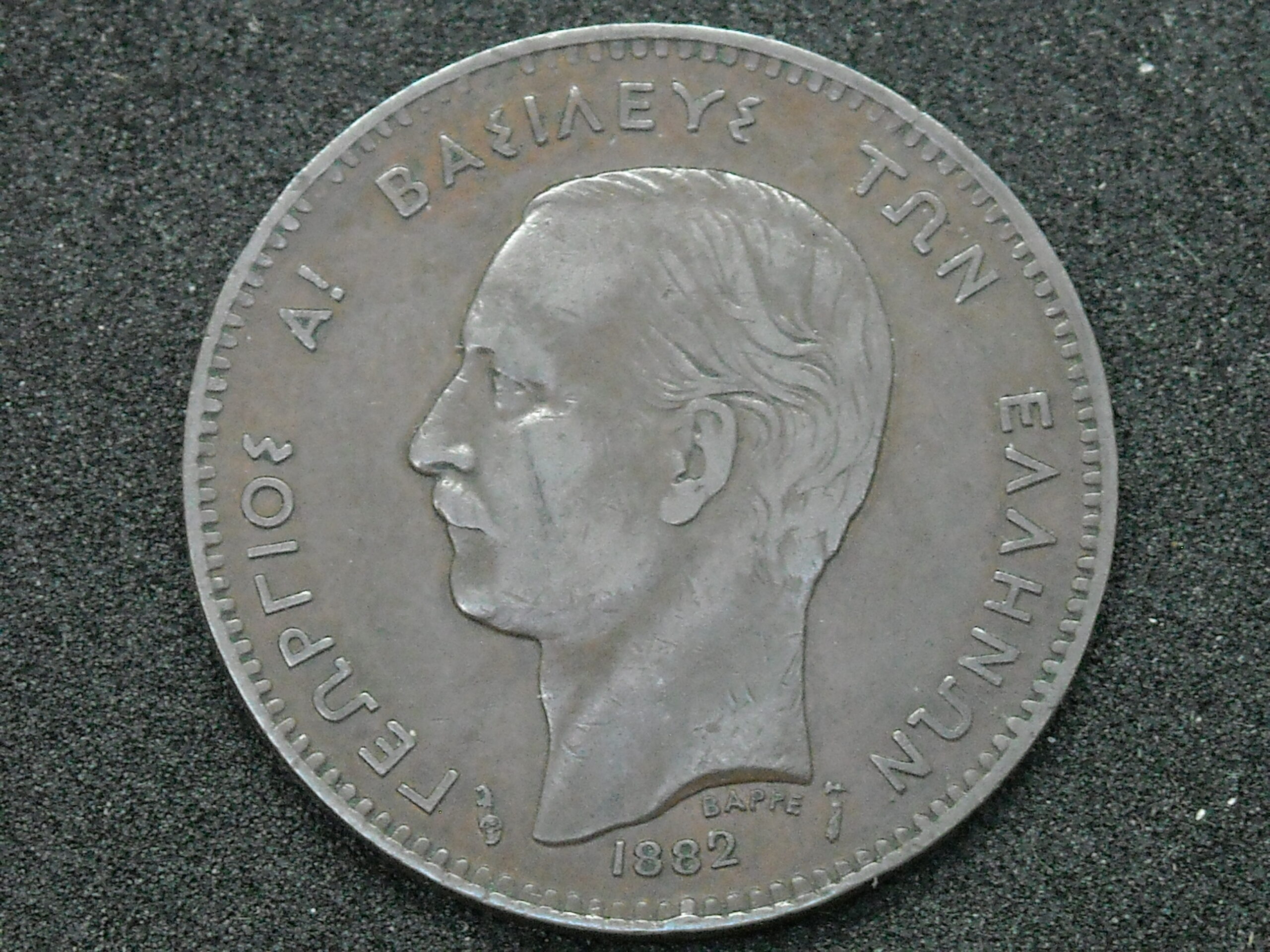 1882 5 LEPTA COIN OF KING GEORGE I. THE QUALITY ASSESSMENT OF CURRENCY IS SUBJECTIVE.