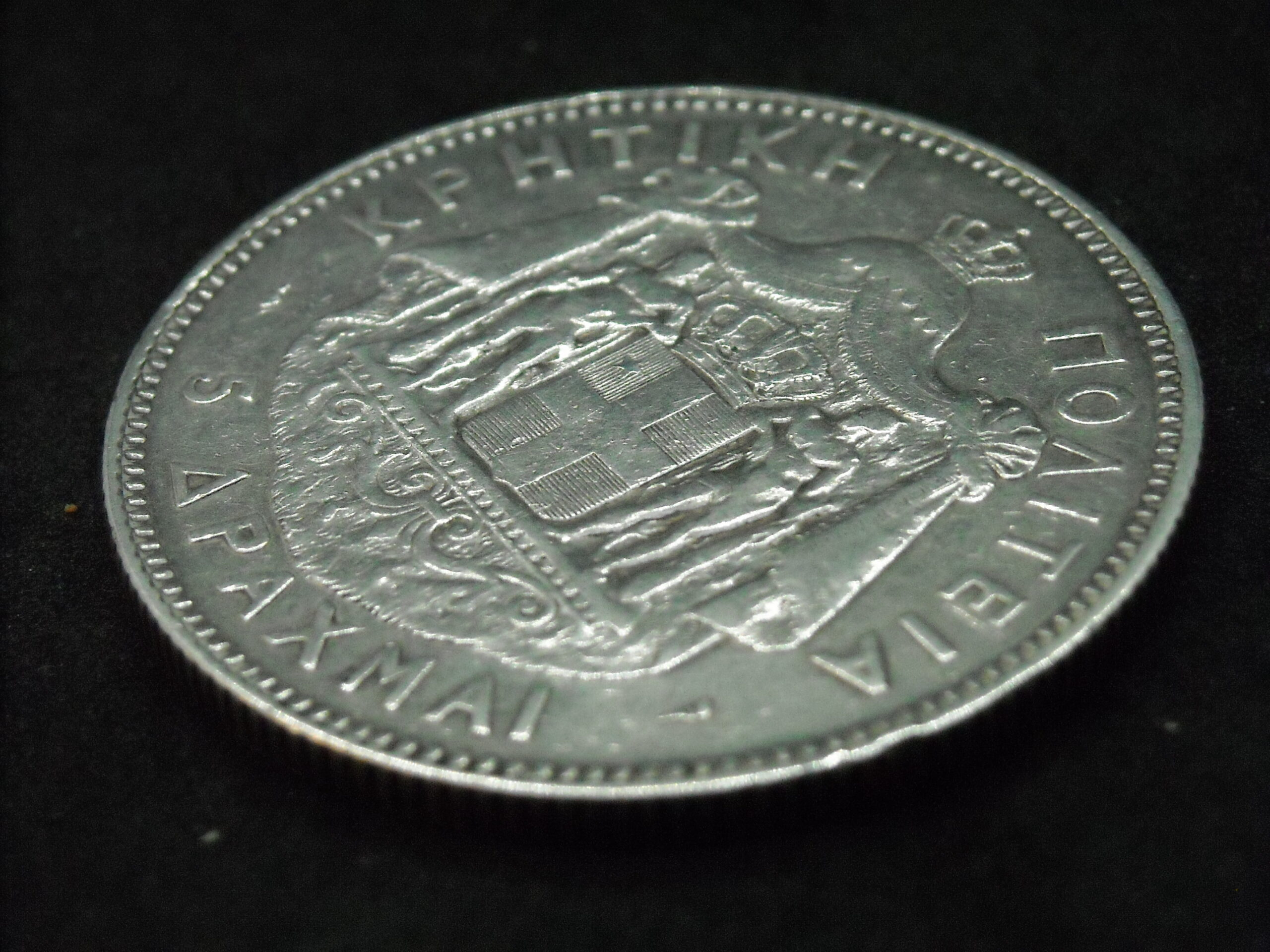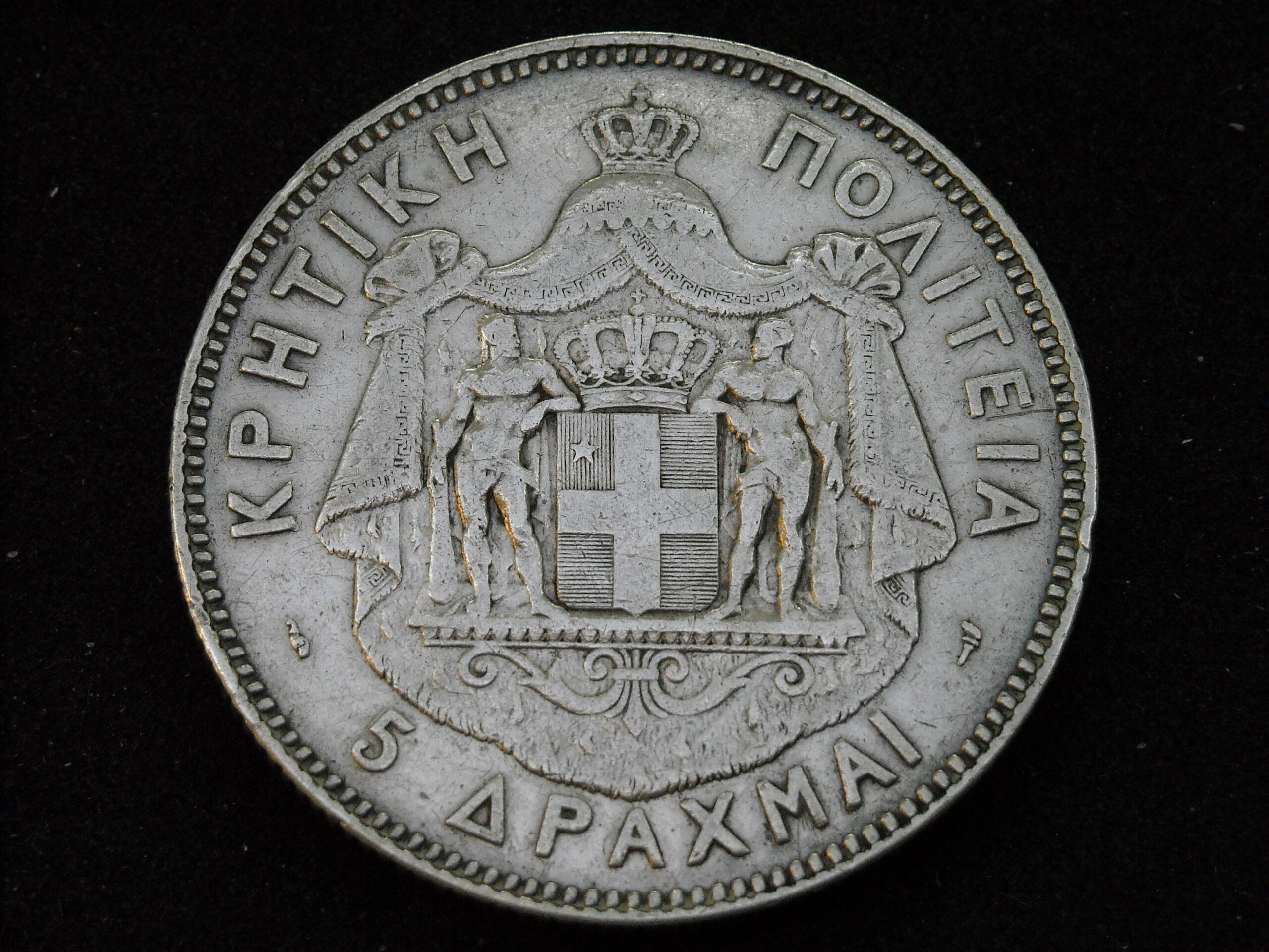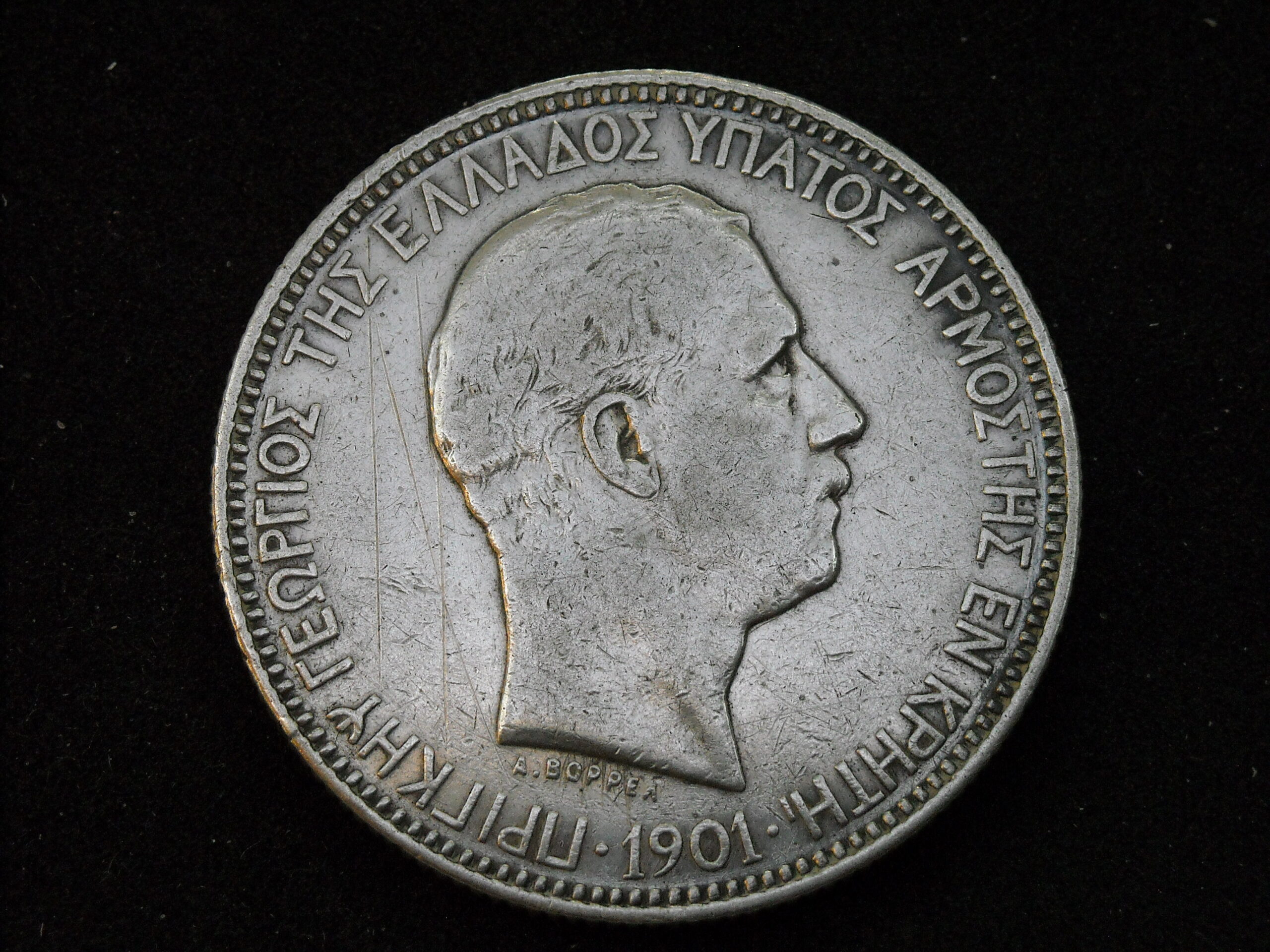 1901 5 DRACHMAS (SILVER .900) “CRETAN STATE – PRINCE GEORGE”. THE ASSESSMENT OF CURRENCY QUALITY IS SUBJECTIVE.