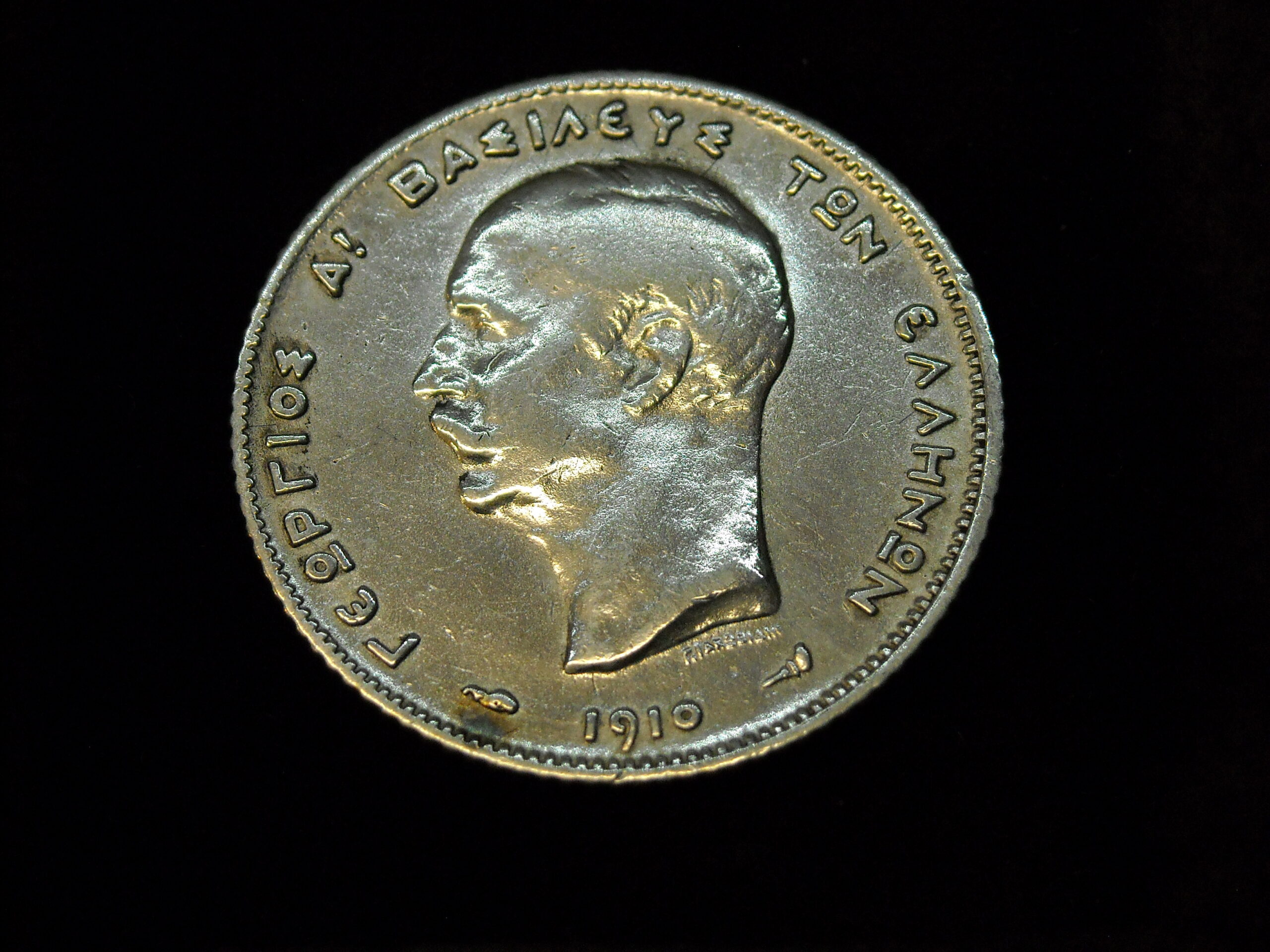 1910 DRACHMA (.835 SILVER COIN) OF “KING GEORGE I”. THE ASSESSMENT OF CURRENCY QUALITY IS SUBJECTIVE.
