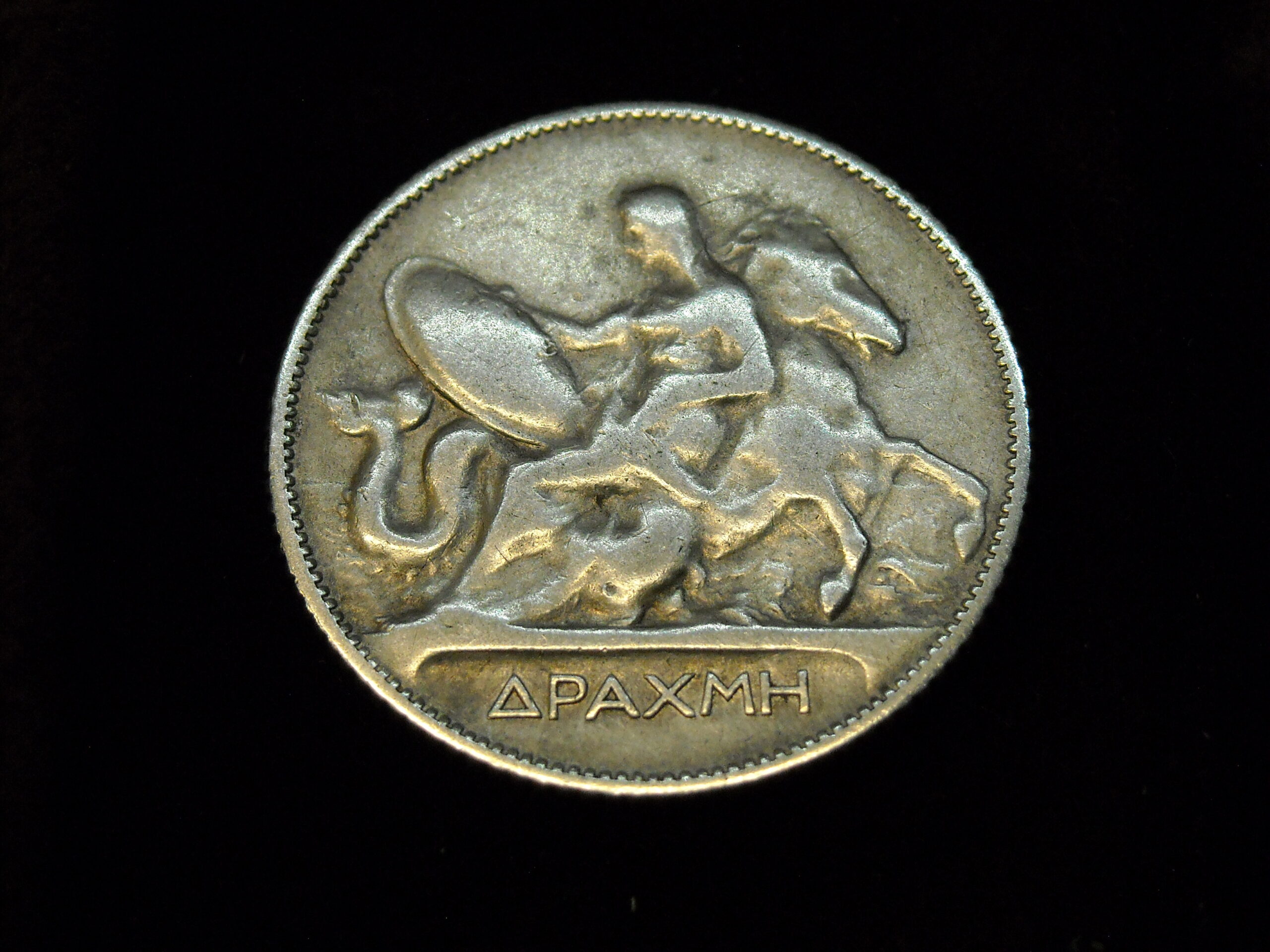 1911 DRACHMA (.835 SILVER COIN) OF “KING GEORGE I”. THE ASSESSMENT OF CURRENCY QUALITY IS SUBJECTIVE.