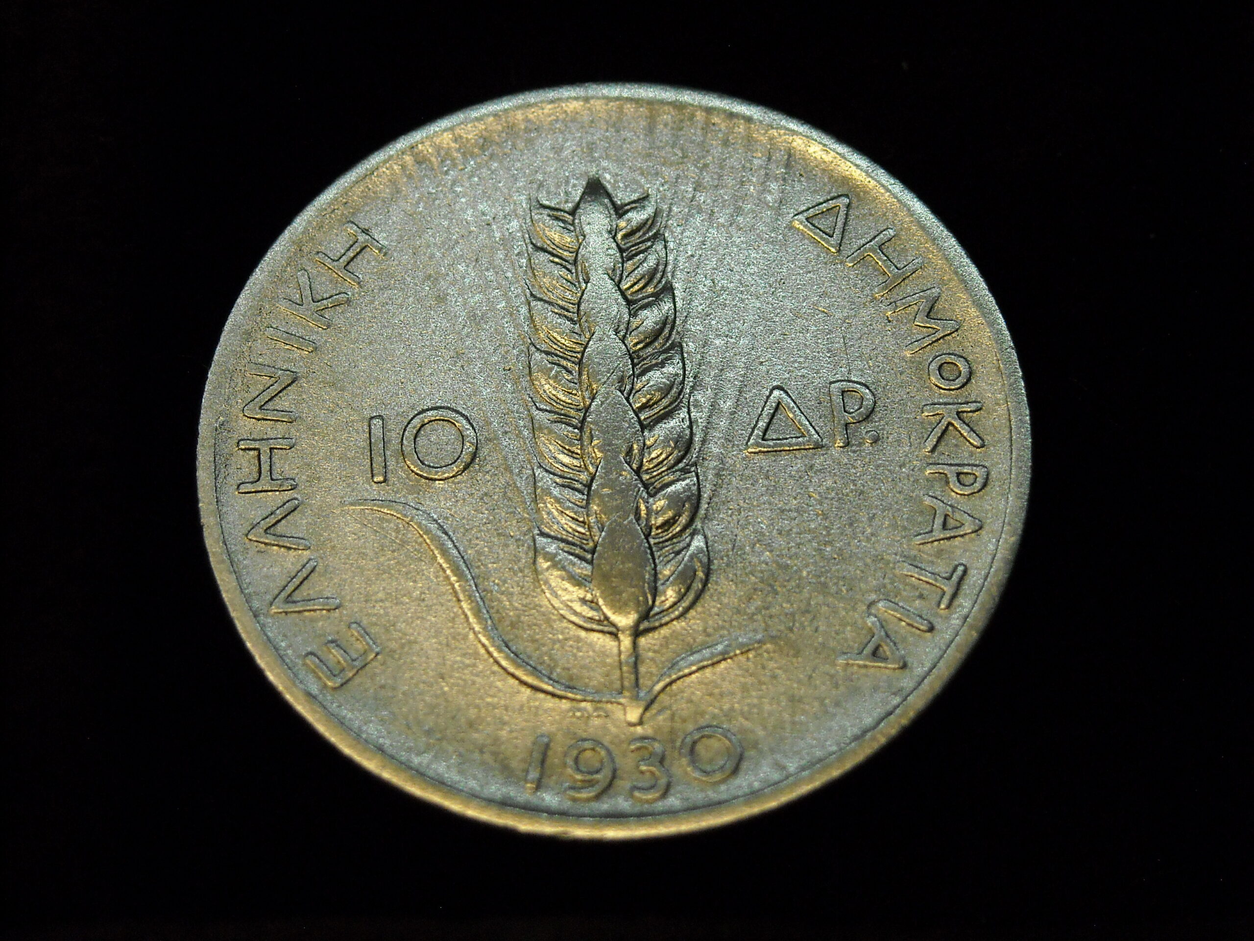 1930 10 DRACHMAS (.500 SILVER COIN) WITH GODESS OF ‘DIMITRA’. THE ASSESSMENT OF CURRENCY QUALITY IS SUBJECTIVE.