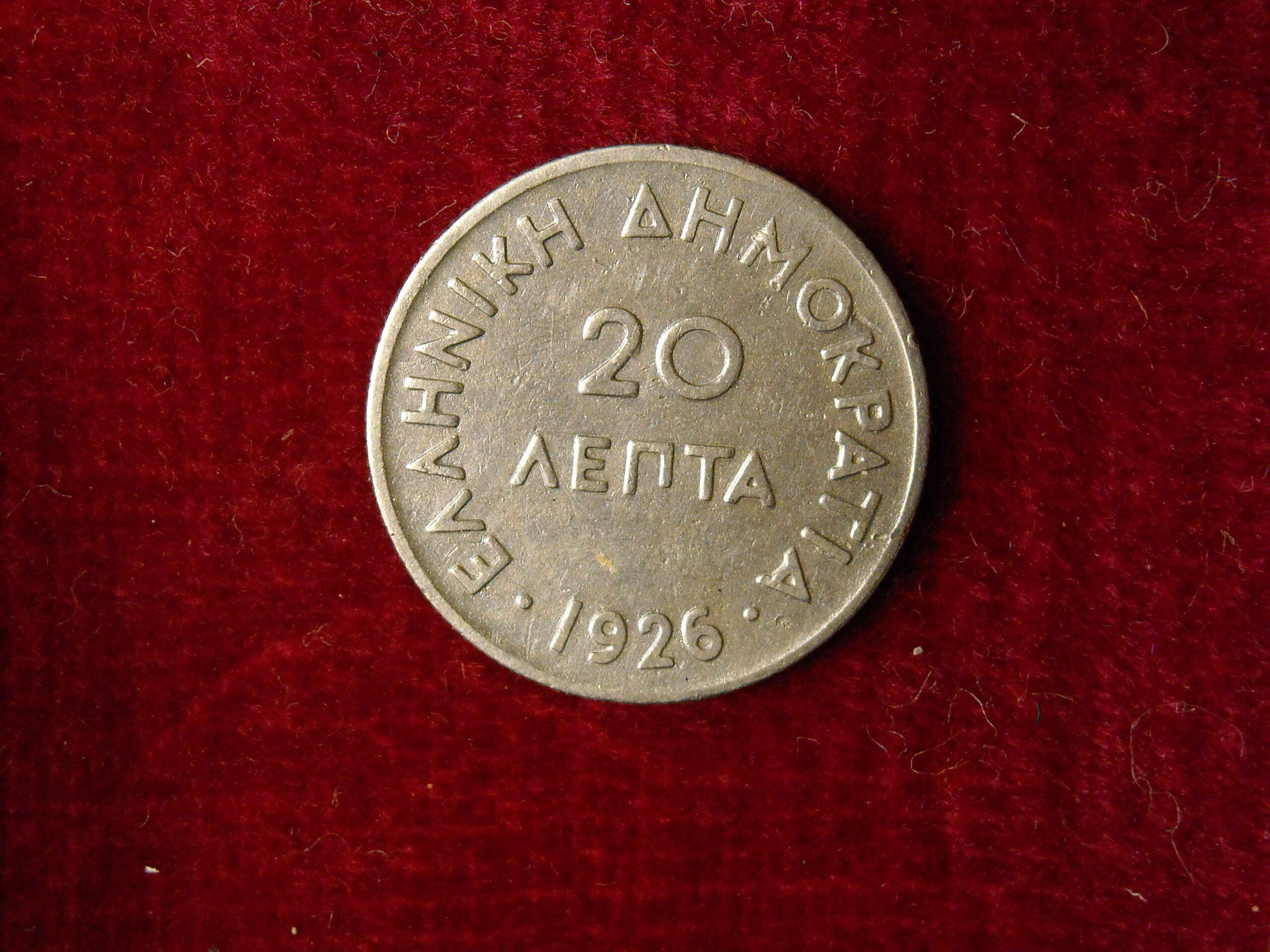 1926 20 LEPTA (ATHENA) “2nd HELLENIC REPUBLIC”. THE QUALITY ASSESSMENT OF CURRENCY IS SUBJECTIVE.
