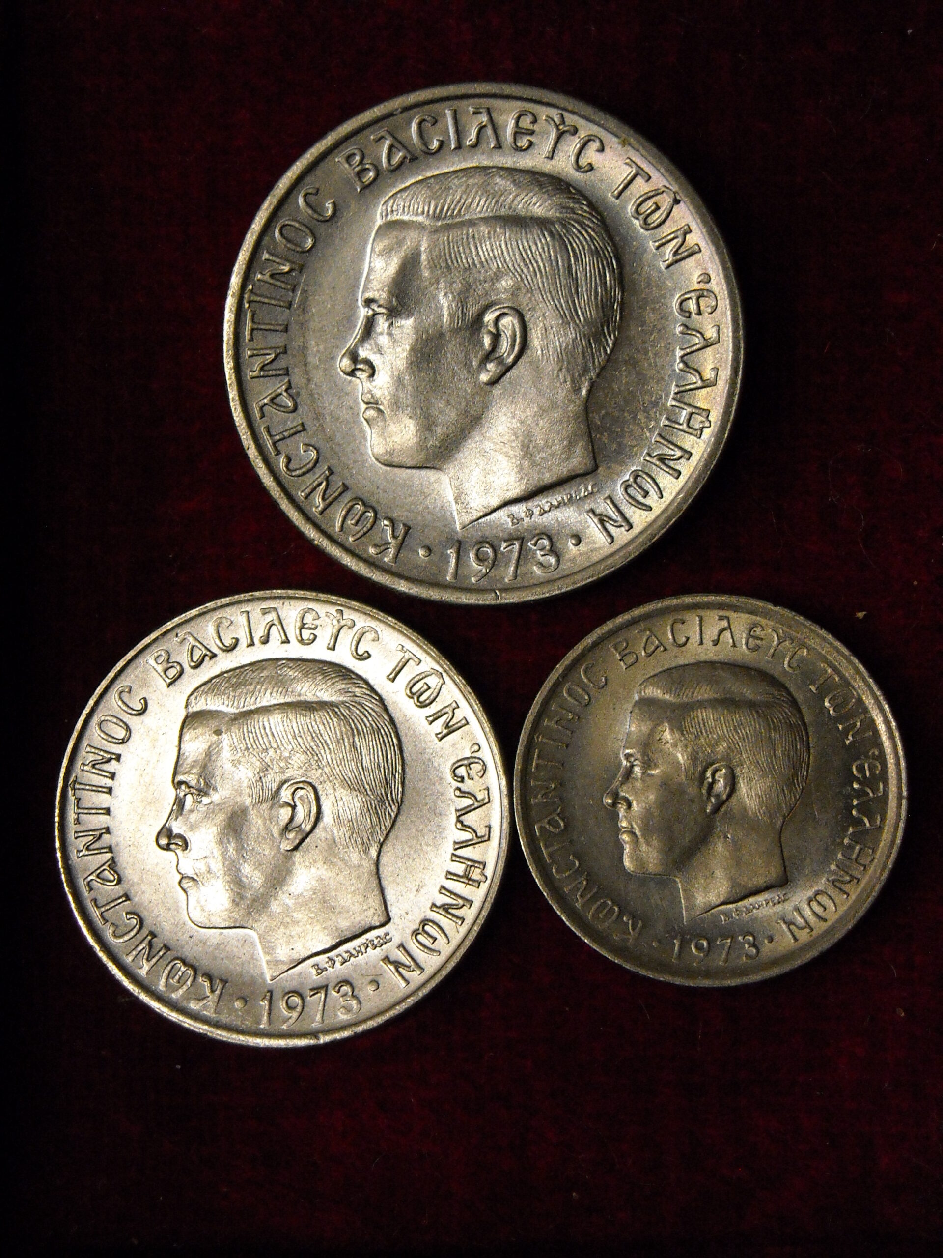 1973A’ 0.50-1-2DRACHMAS UNCIRCULATED “KING KONSTANTINE”. MINT MARKS. THE QUALITY ASSESSMENT OF CURRENCY IS SUBJECTIVE.