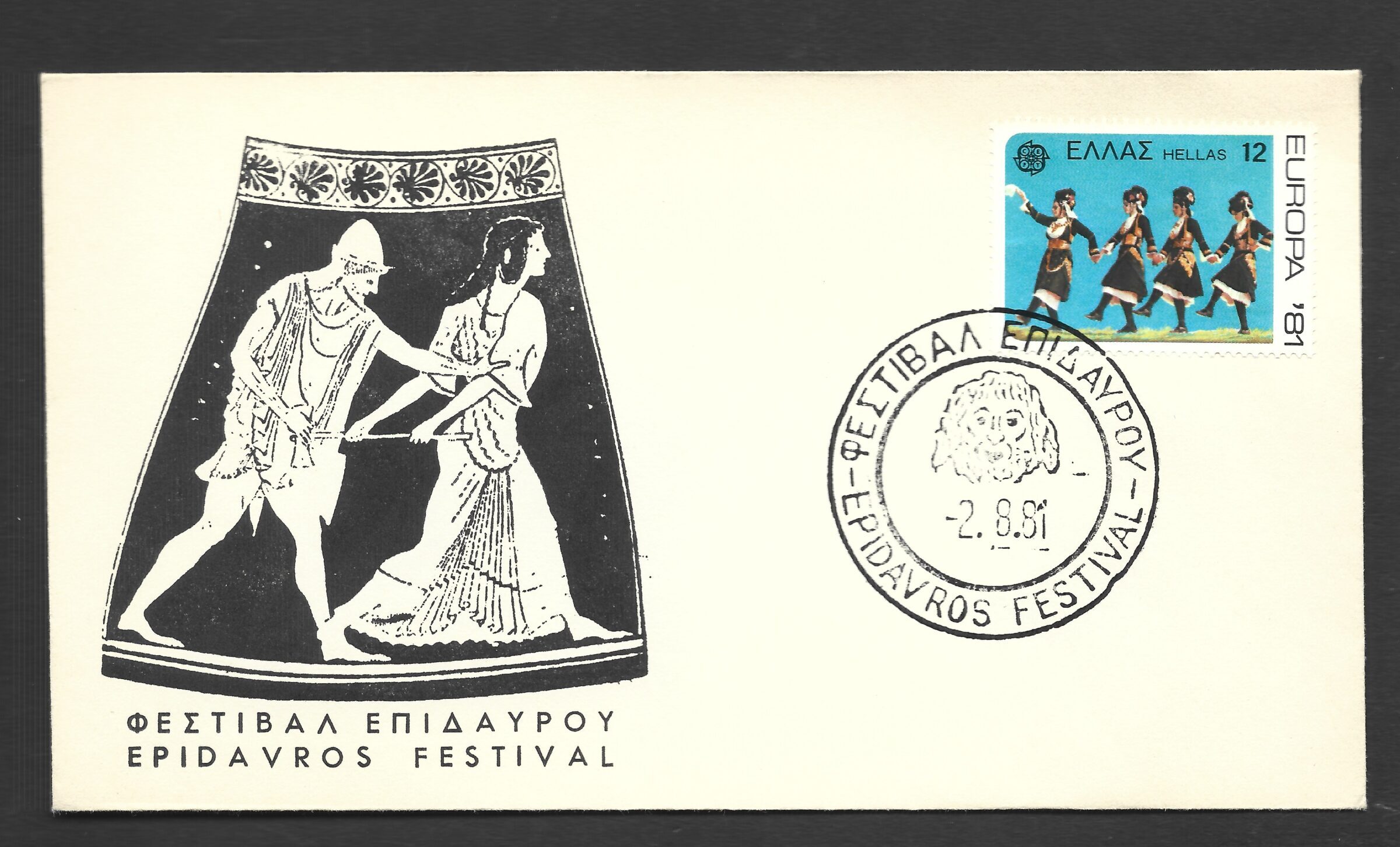 1981/02/08 “EPIDAVROS FESTIVAL” Commemorative cachet in pictured envelope. Dimensions 17.5cm X 9.8cm.