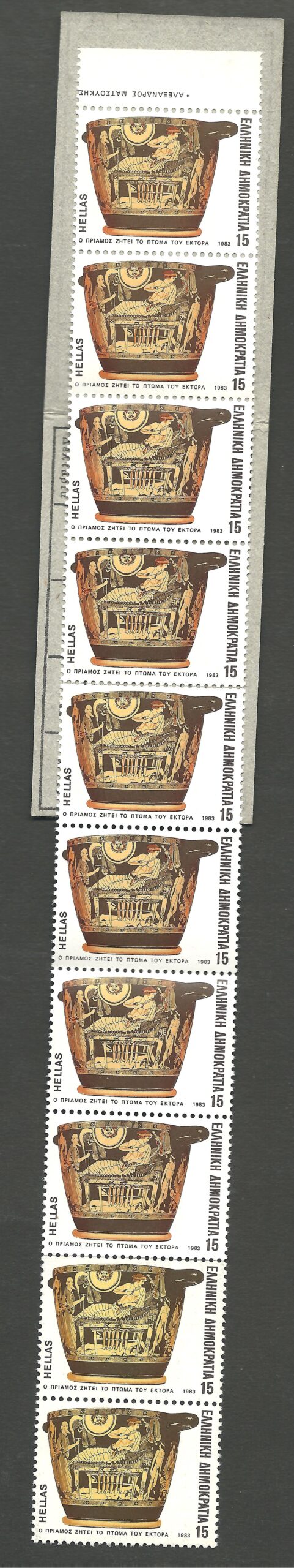1983 BOOKLET “HOMER’S ODES” 15DR. STAMP STRIP OF 10 (HELLAS B9) UNC