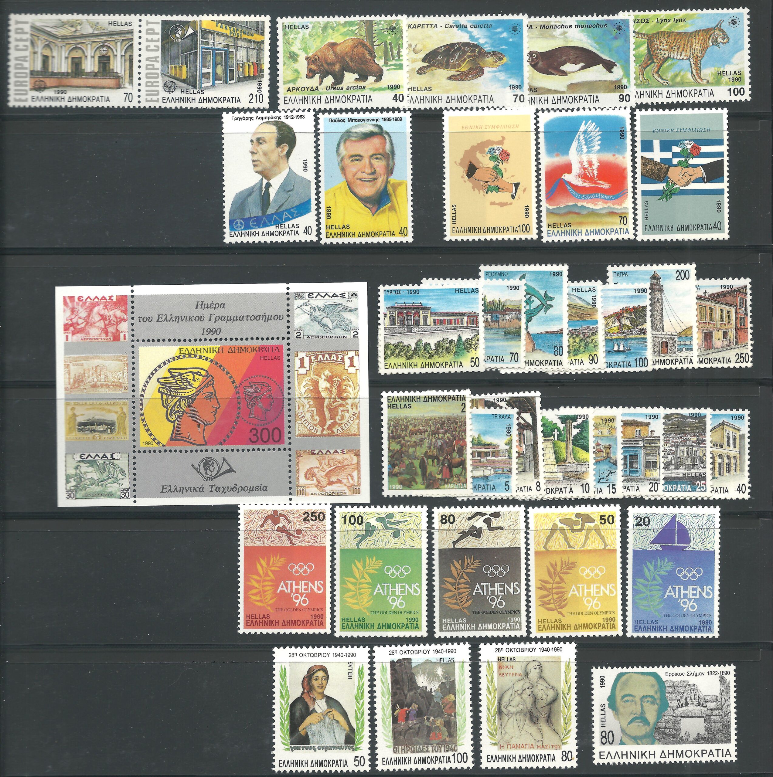 1990 COMPLRTE YEAR SINGLE SETs W.P. UNMOUNTED (**)