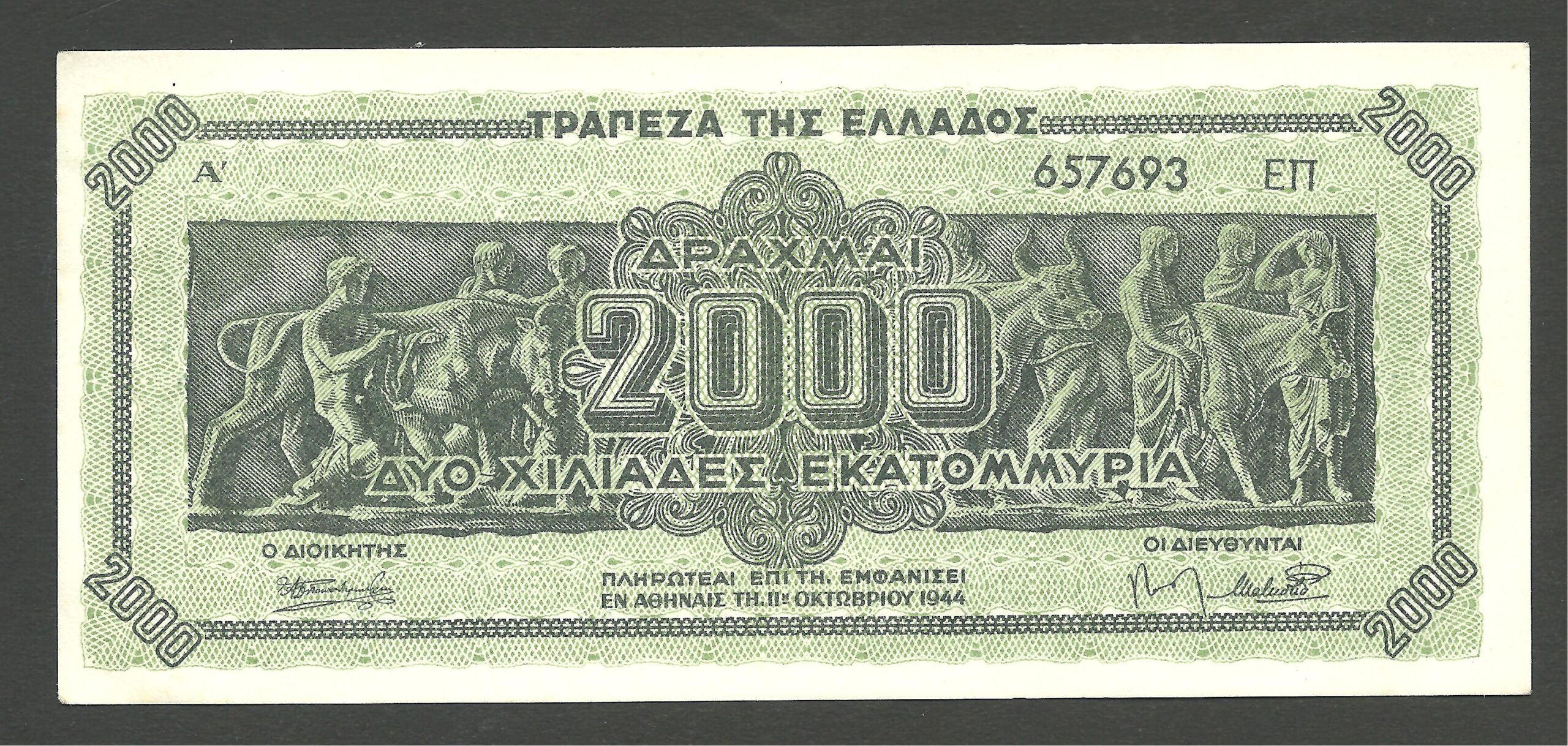 2.000 MILLION DRACHMAS 11/10/1944 UNC