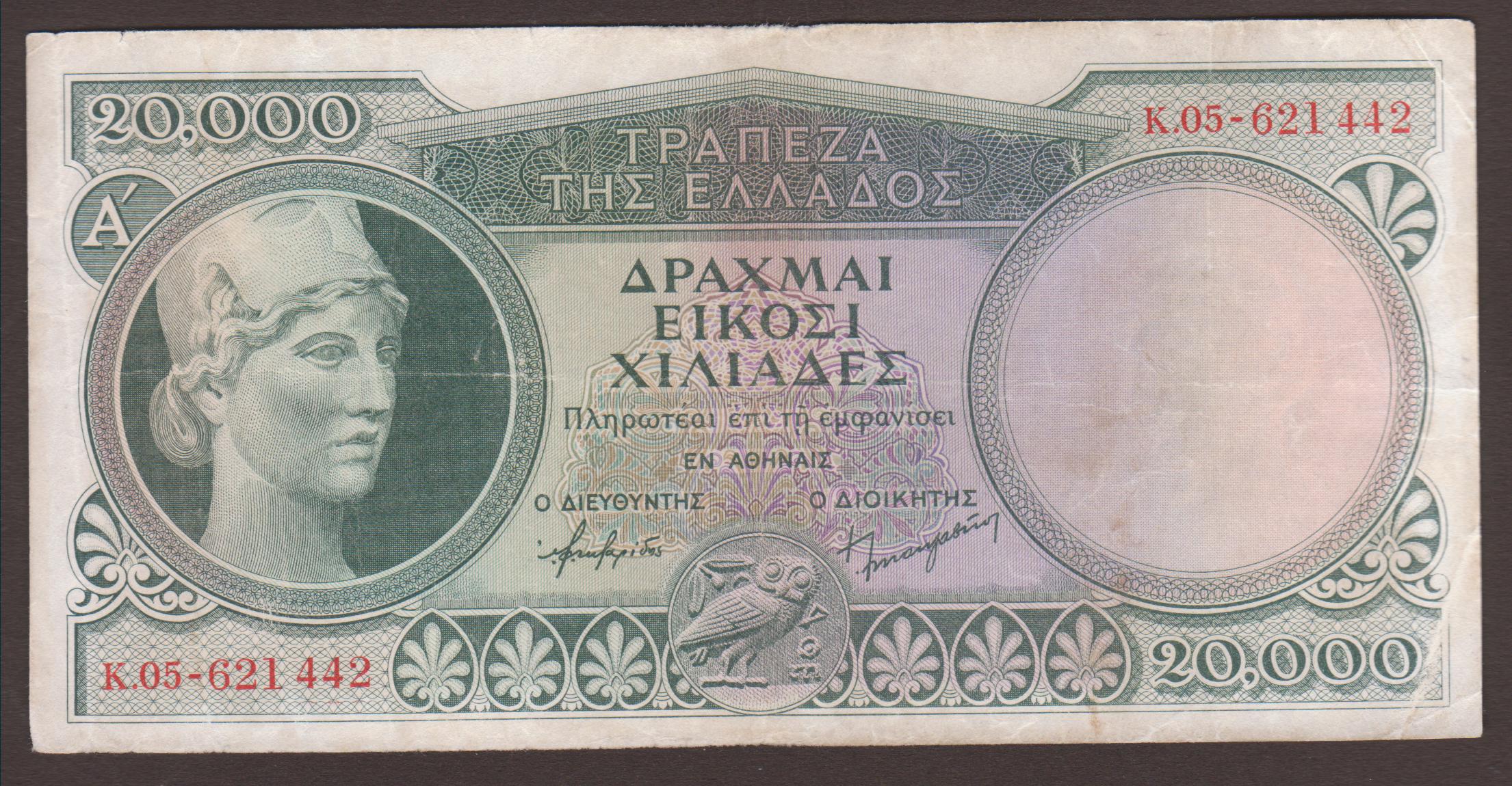 20.000 DRACHMAS 1946 1st EDITION 90X180 LARGE FORMAT