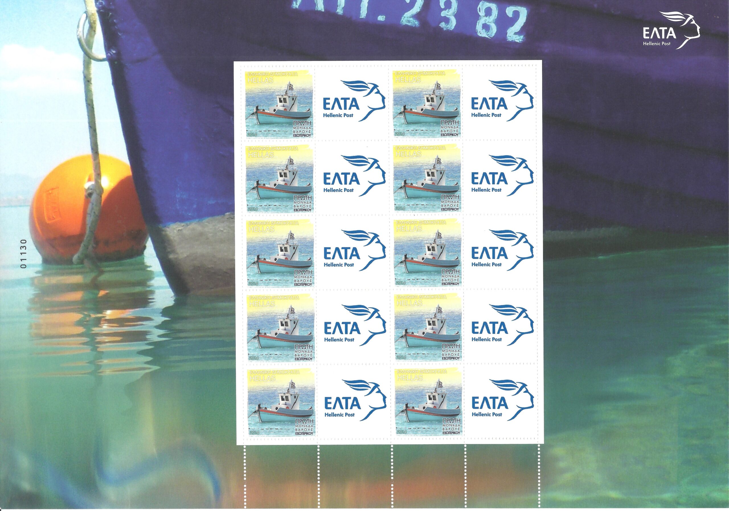 2014 “TURIST” PERSONAL STAMP SHEET OF 10 STAMPS 1st OUTLAND WEIGHT “BOAT” (HELLAS 2834B)